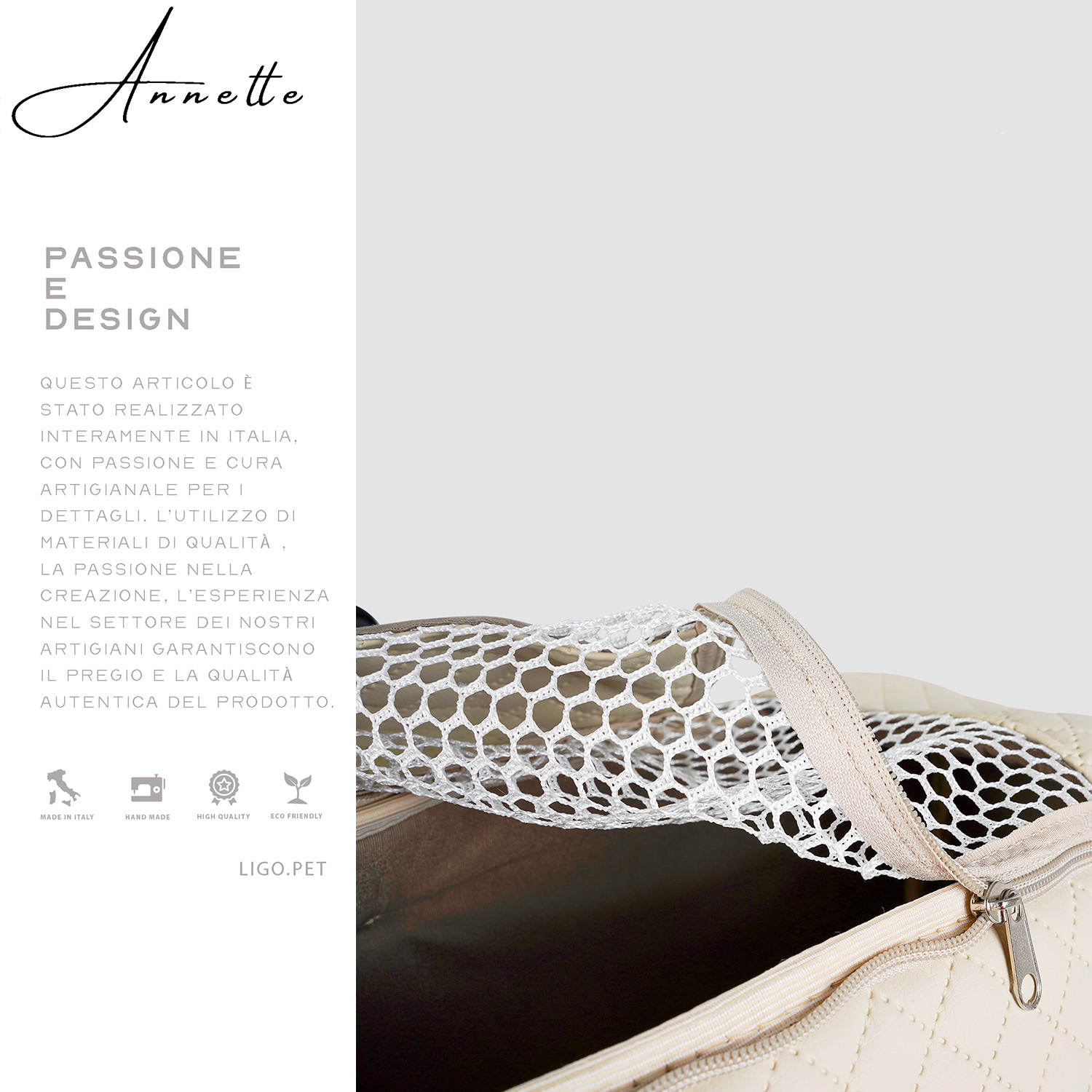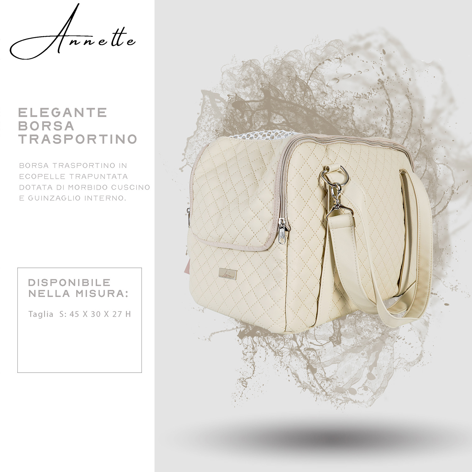 Raffinata borsa trasportino per cani e gatti in ecopelle trapuntata.