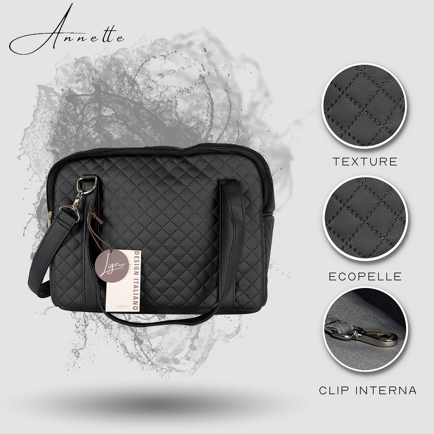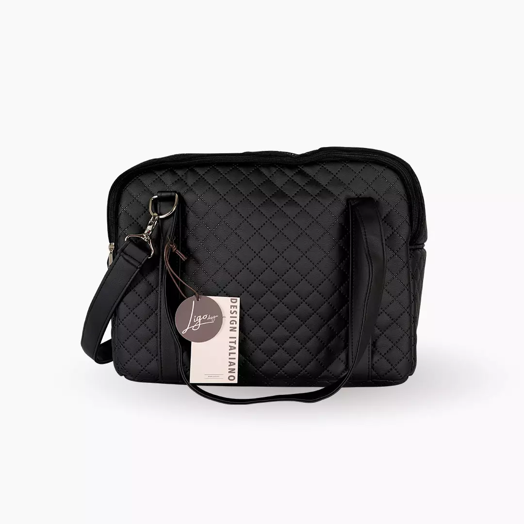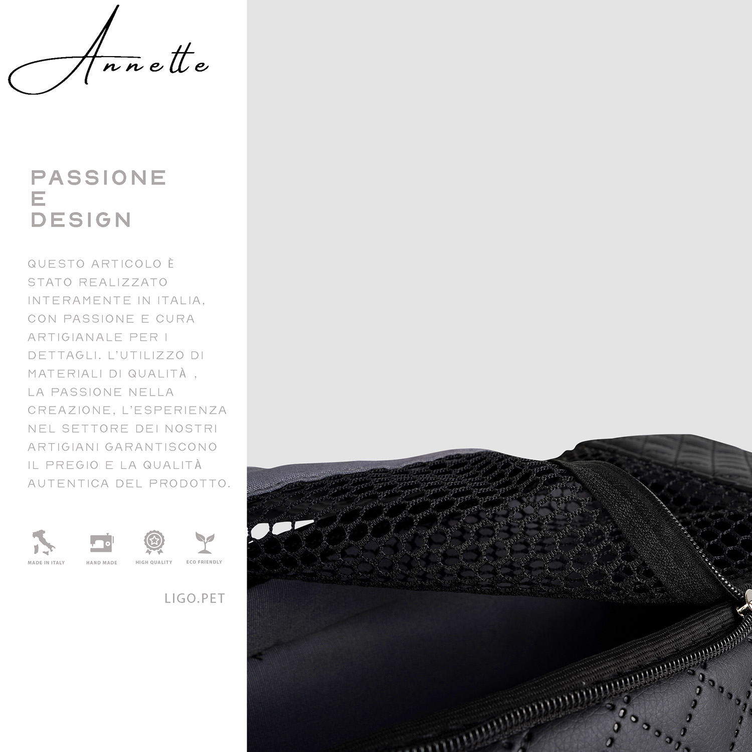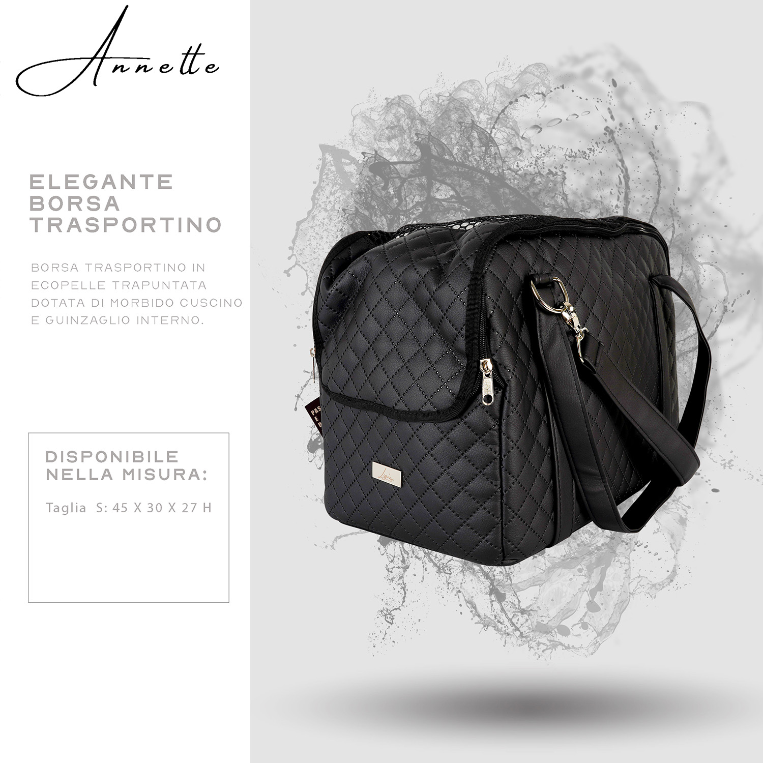 Raffinata borsa trasportino per cani e gatti in ecopelle trapuntata.