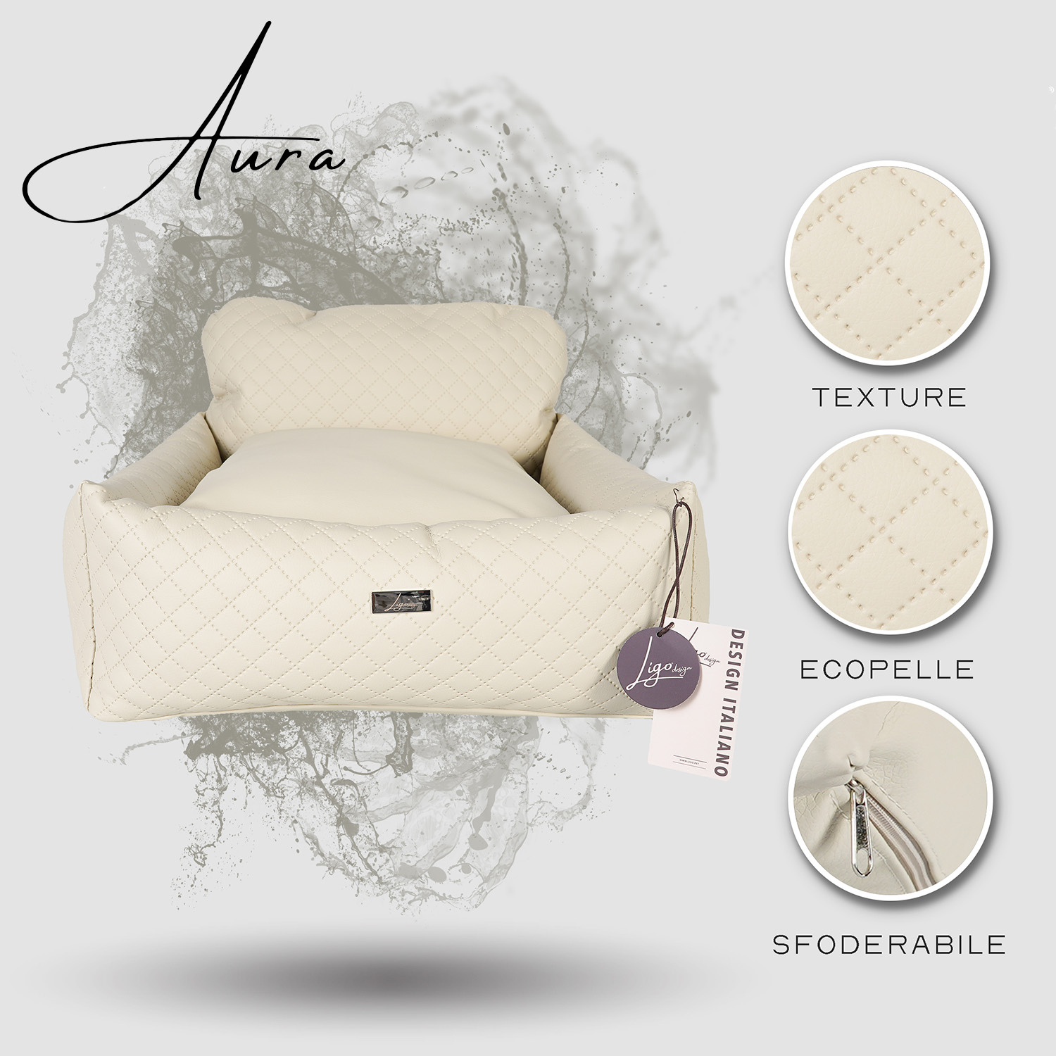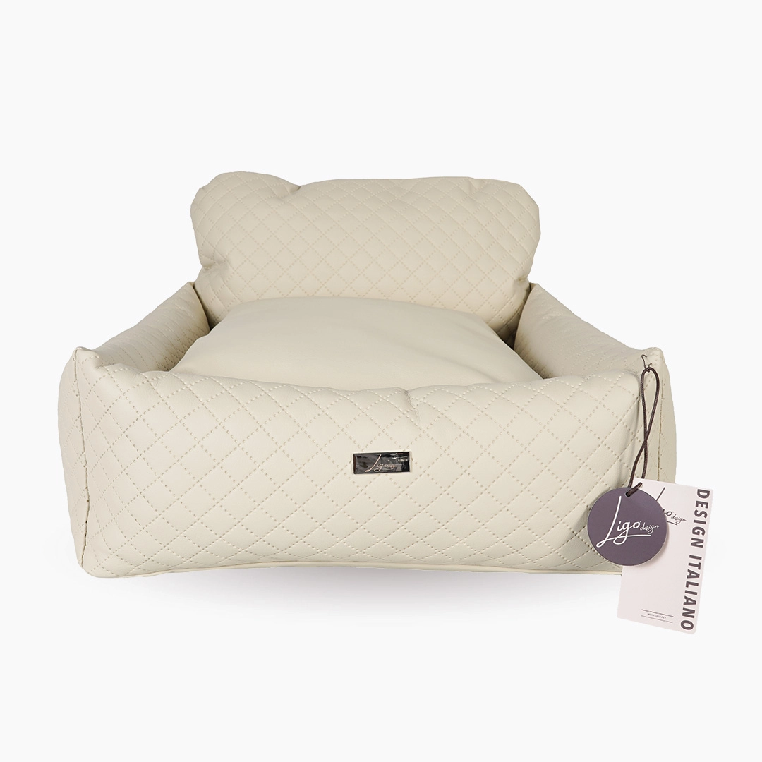 Divanetto in ecopelle trapuntato, dal design elegante.