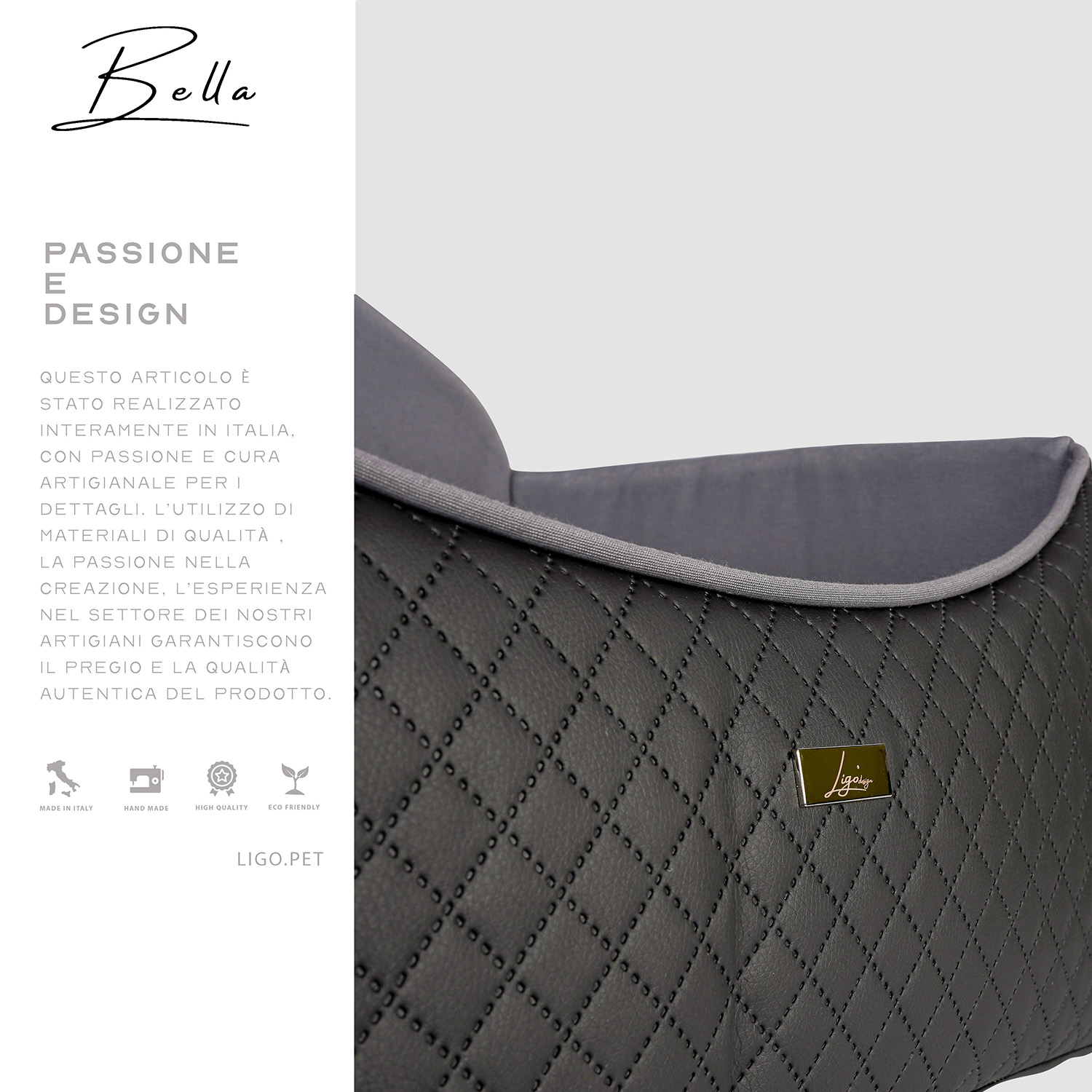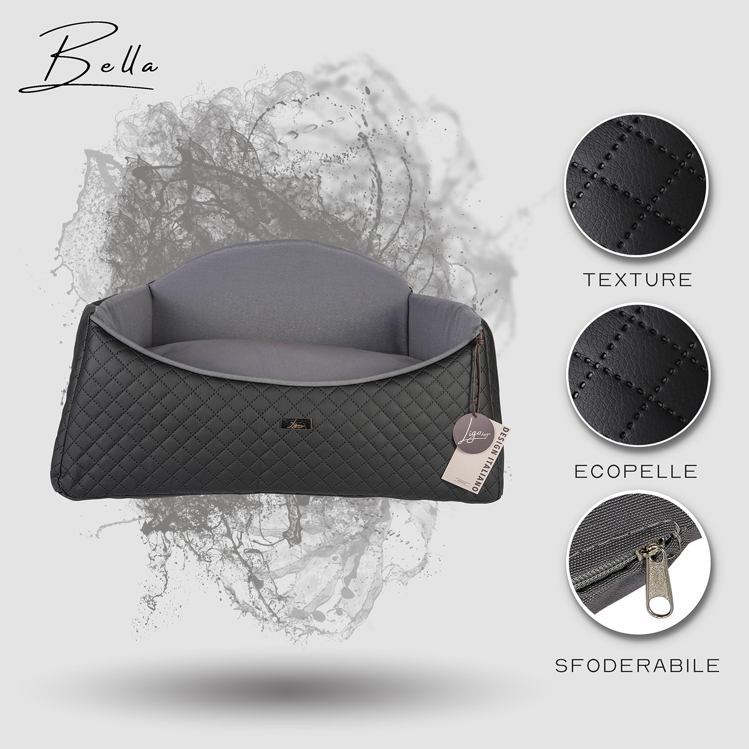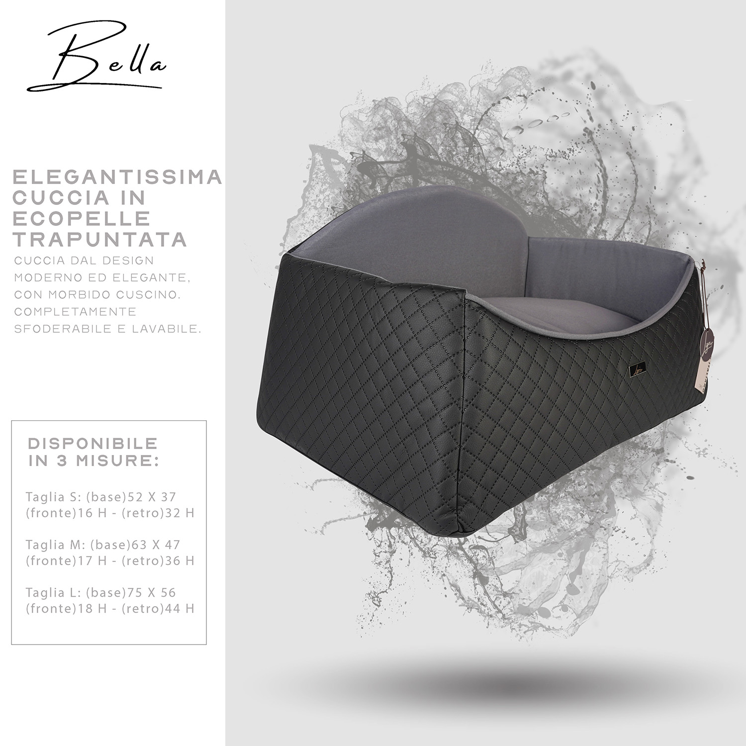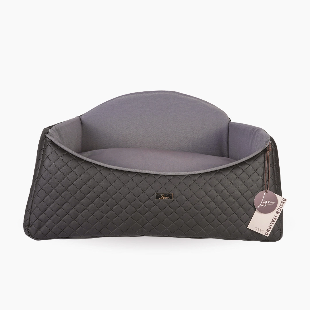 Cuccia elegante con tessuto in ecopelle trapuntata. Il design di questa cuccia dalle linee eleganti la rende un elemento d’arredo.