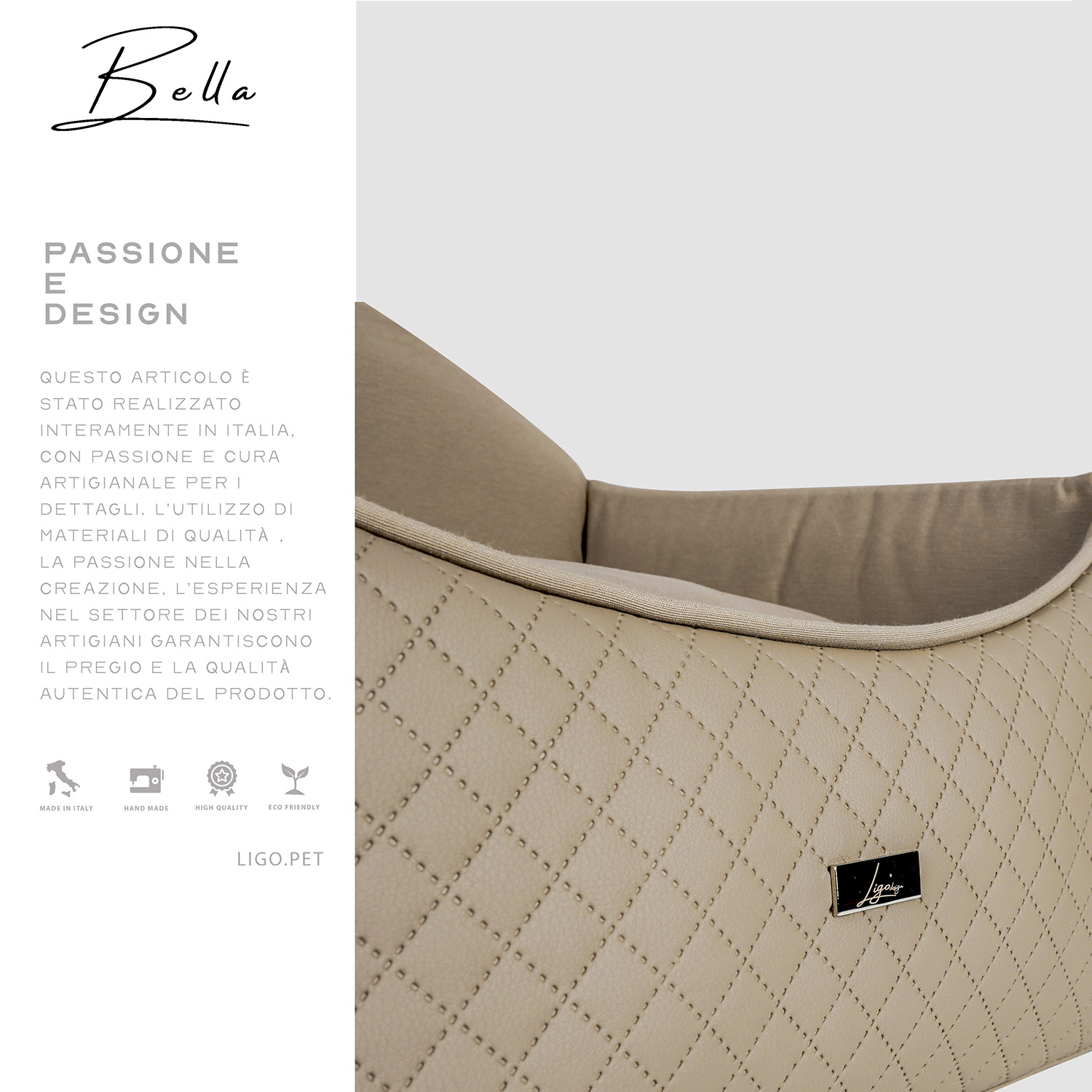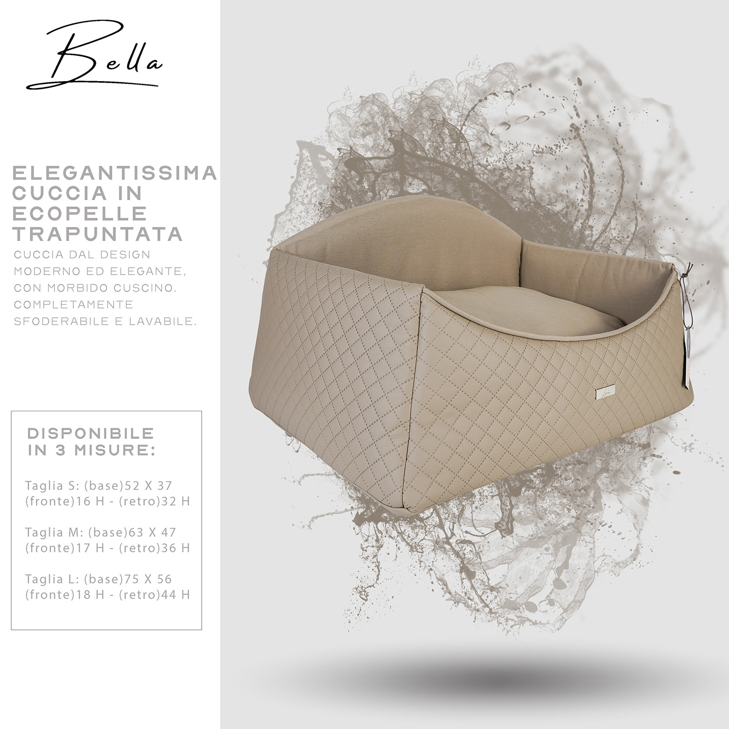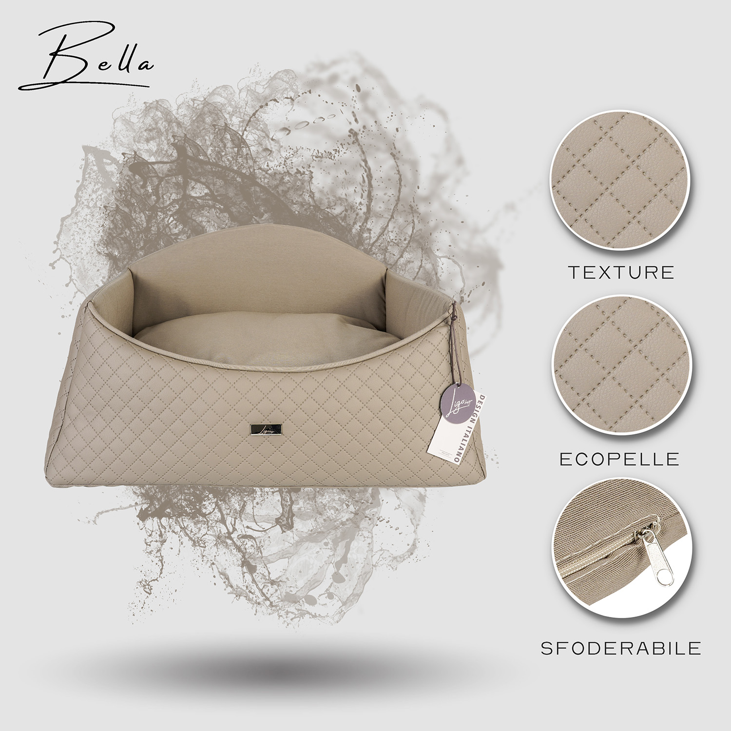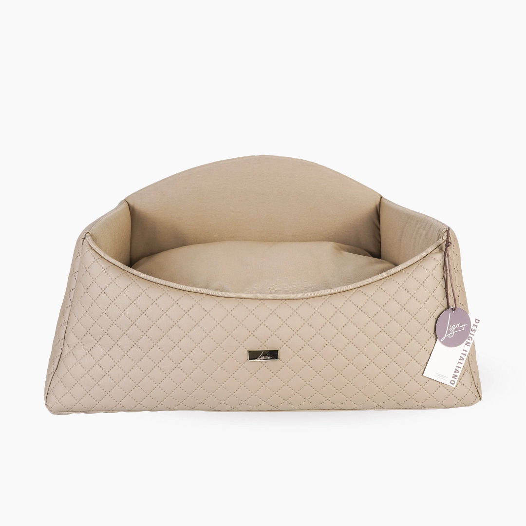 Cuccia elegante con tessuto in ecopelle trapuntata. Il design di questa cuccia dalle linee eleganti la rende un elemento d’arredo.