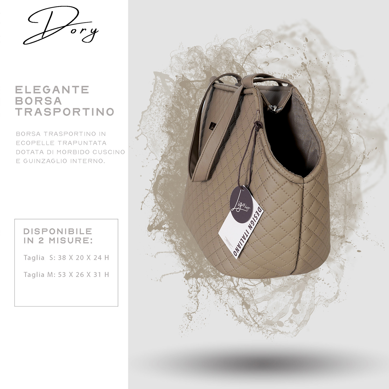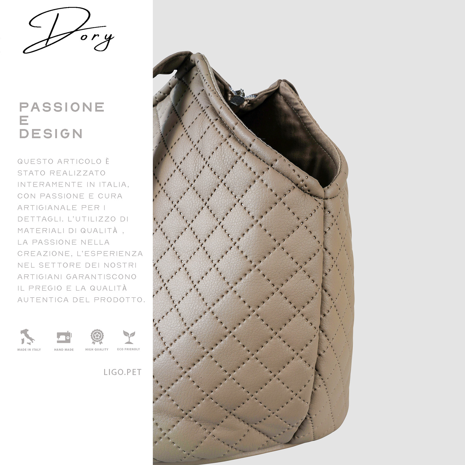 Raffinata borsa trasportino per cani e gatti in ecopelle trapuntata.
