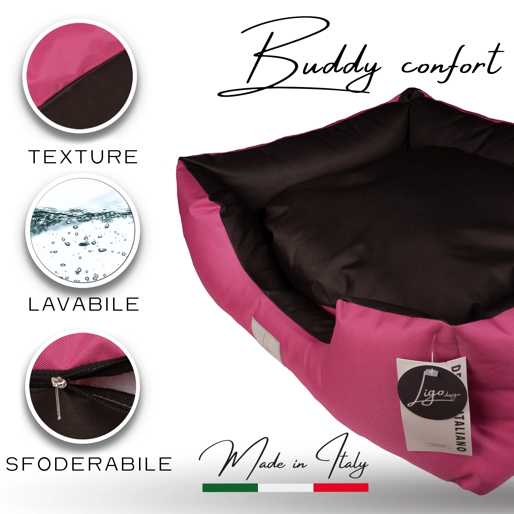 La cuccia Ligo Buddy Confort è completamente sfoderabile, idrorepellente e resistente. Lavabile in lavatrice per una pulizia facile. Prodotto di alta qualità per il tuo fedele amico. Offri al tuo cane il massimo comfort e praticità. 🐾🏡🌧️🧼