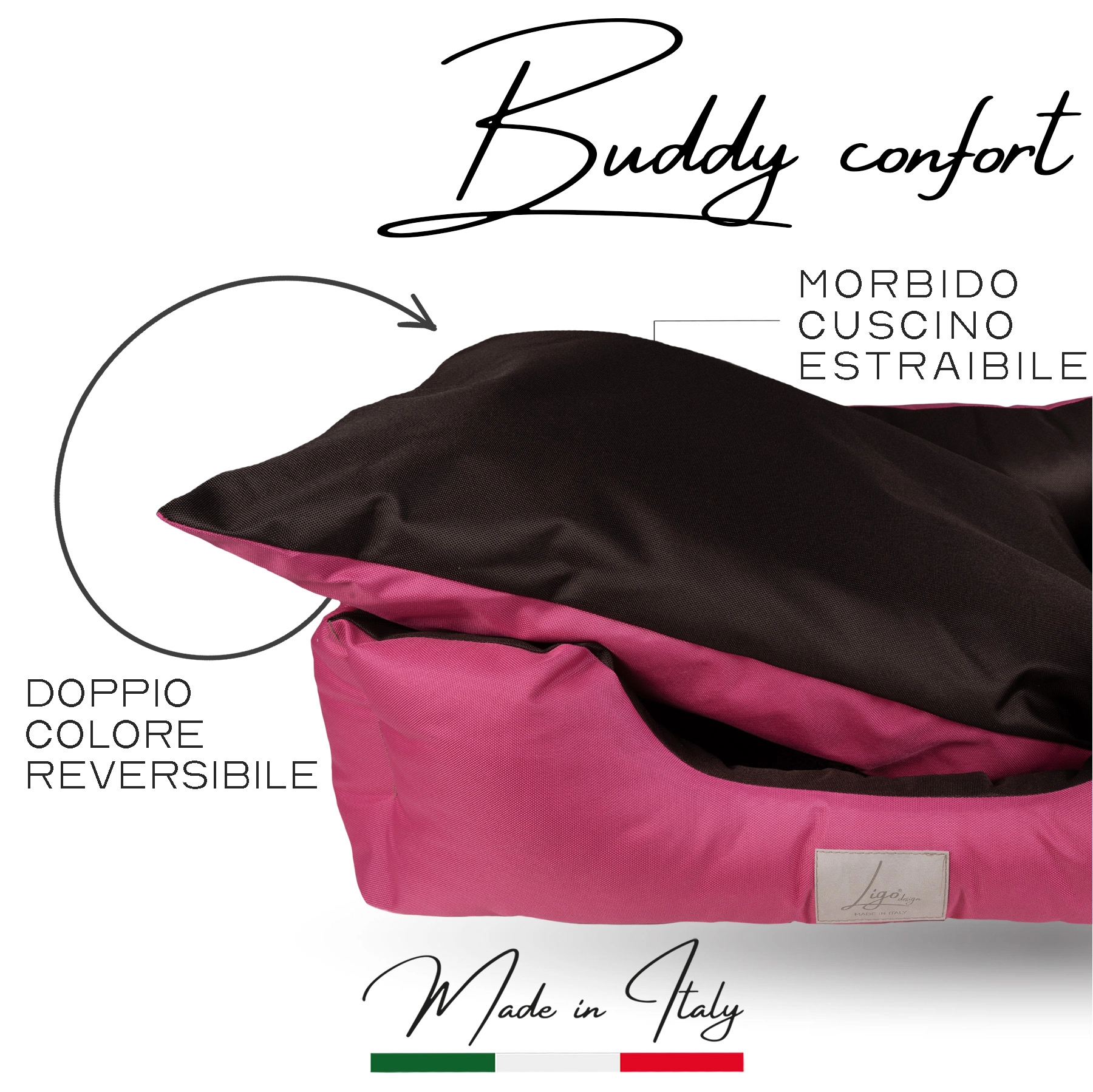 La cuccia Buddy Confort Ligo è un lettino, adatta per tutte le razze di cani da piccole a grandi, da uso sia esterno che interno.