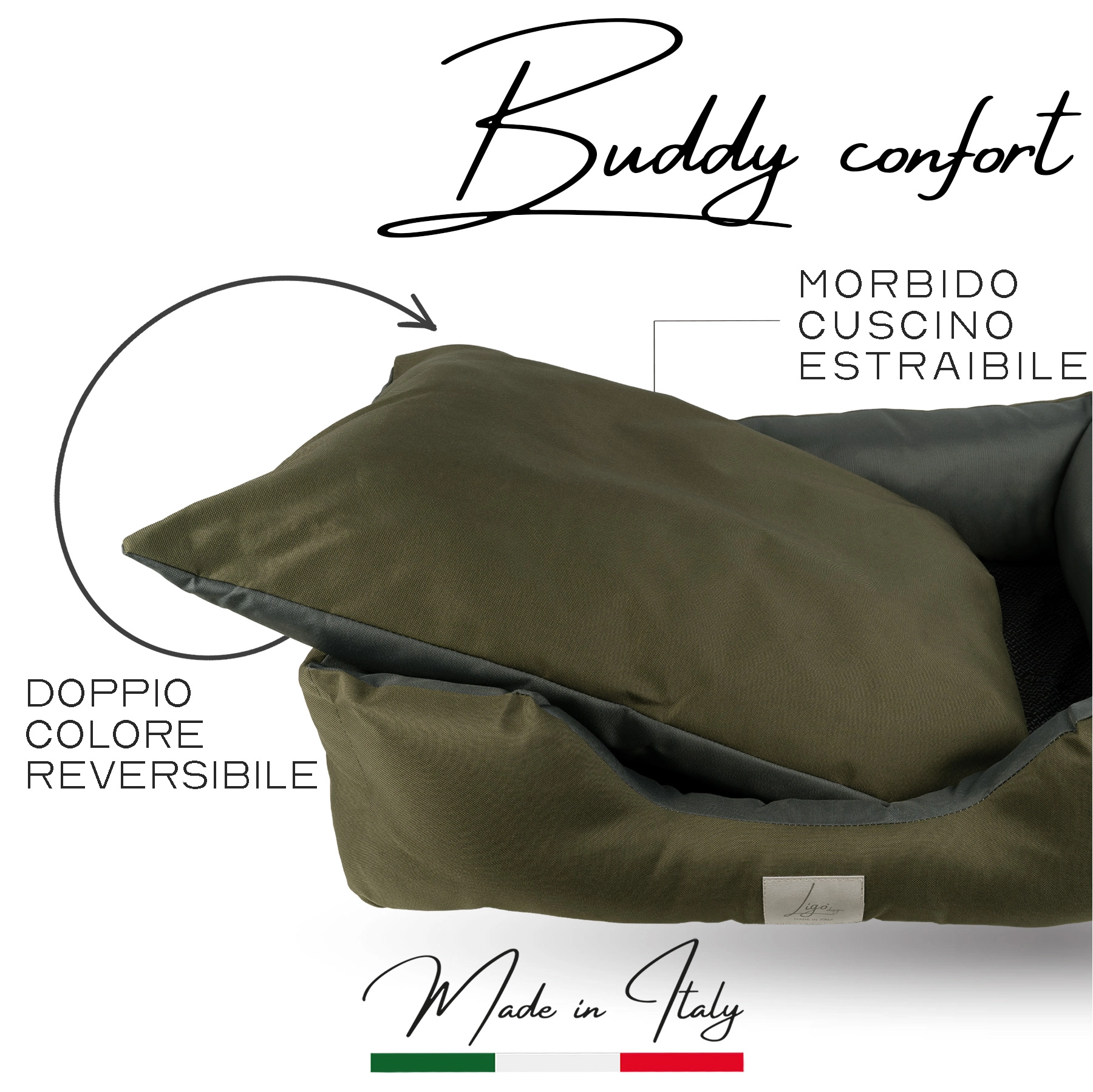La cuccia Buddy Confort Ligo è un lettino, adatta per tutte le razze di cani da piccole a grandi, da uso sia esterno che interno.
