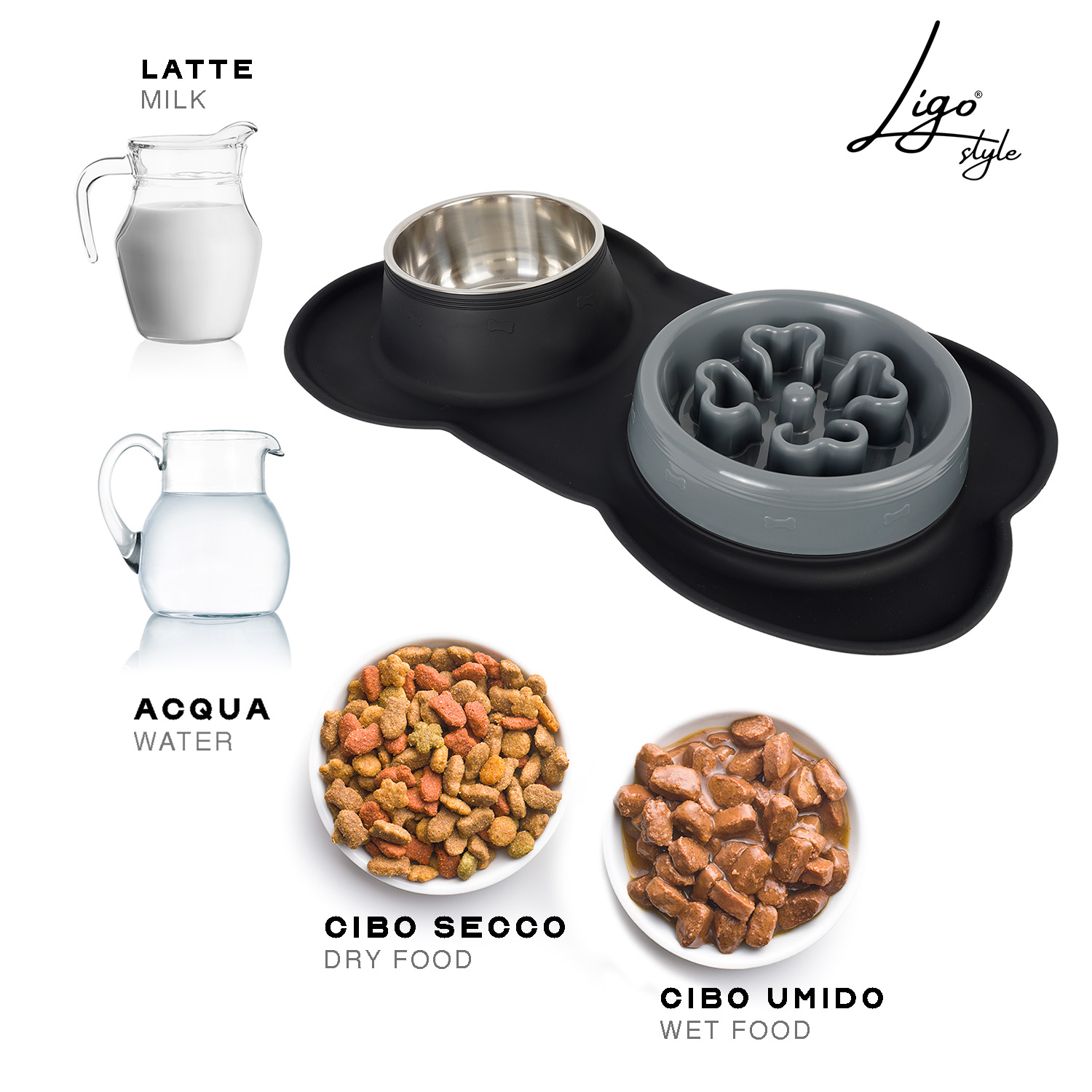 • Utilizzabile per cibo secco e umido