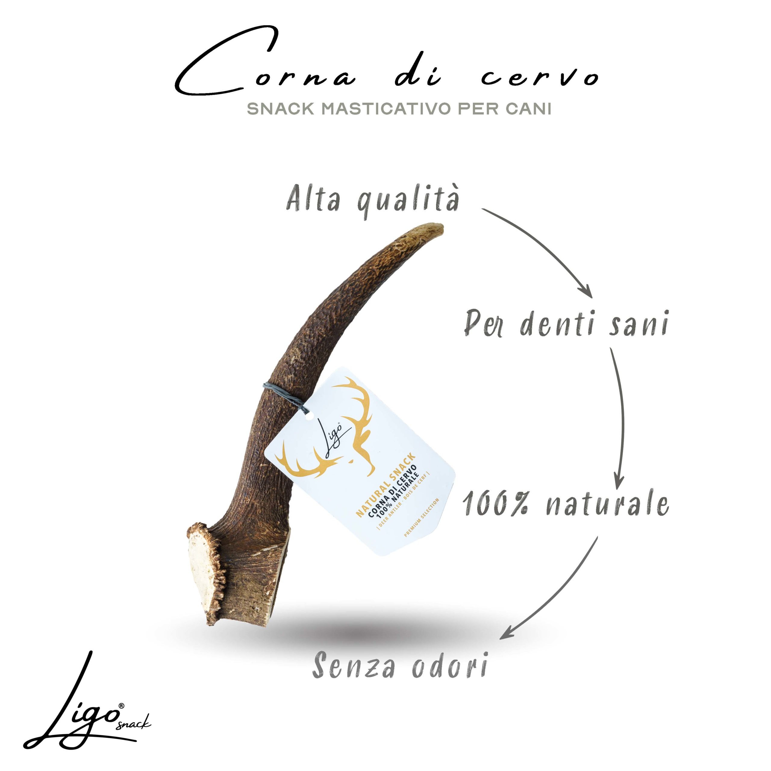 Una fonte naturale di calcio, fosforo, manganese e zinco. Le corna da masticare costituiscono un esercizio perfetto per la formazione di ossa e denti nel tuo cane.