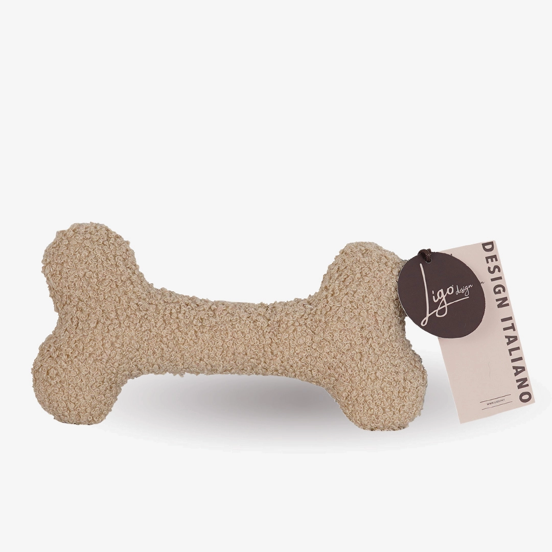 Simpatico peluche/cuscino di piccole dimensioni per cani, a forma di osso. Pensato anche come elegante accessorio per le cucce della linea Winter.