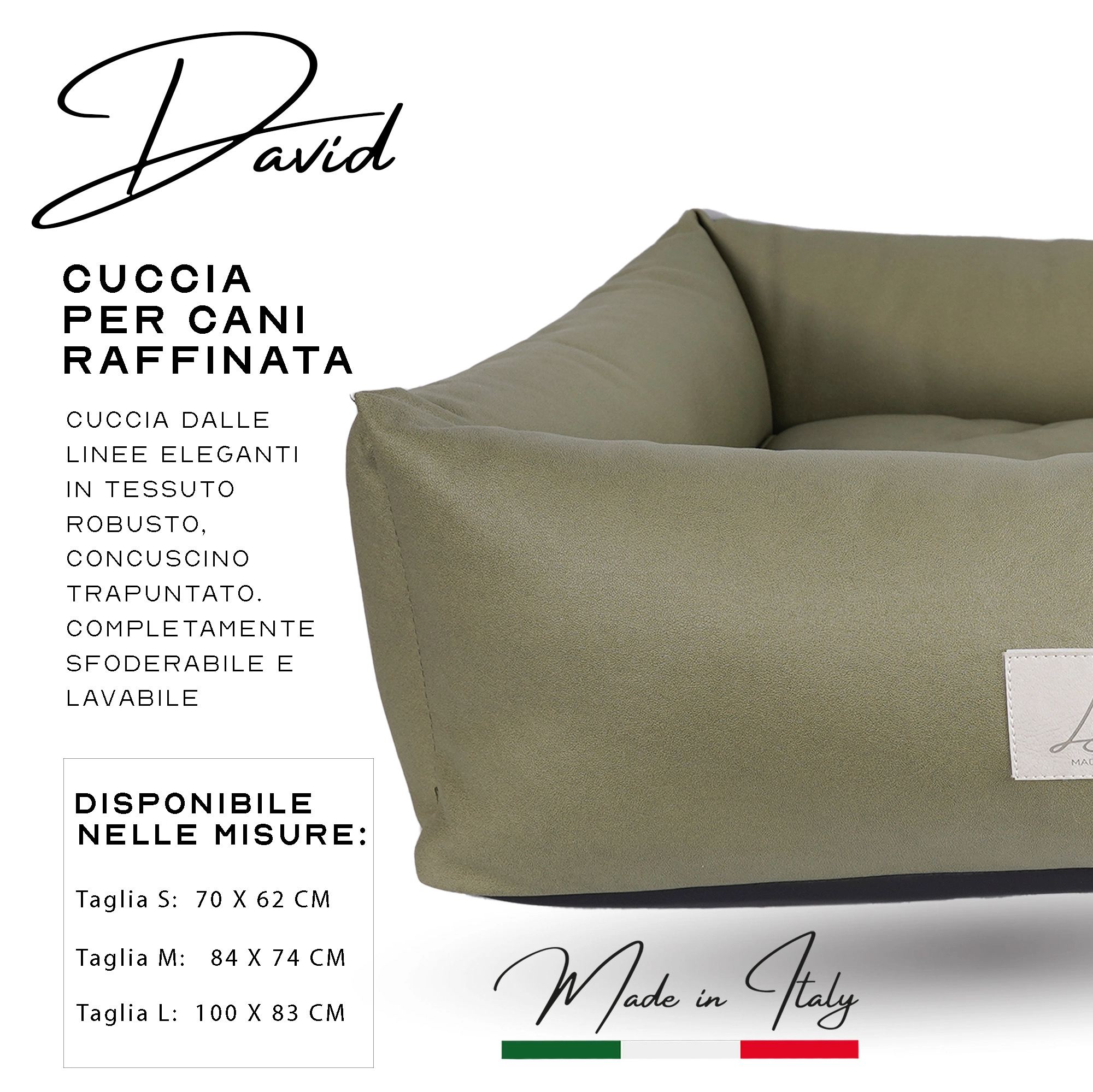 • Sfoderabile, sul fondo e sui 2 cuscini