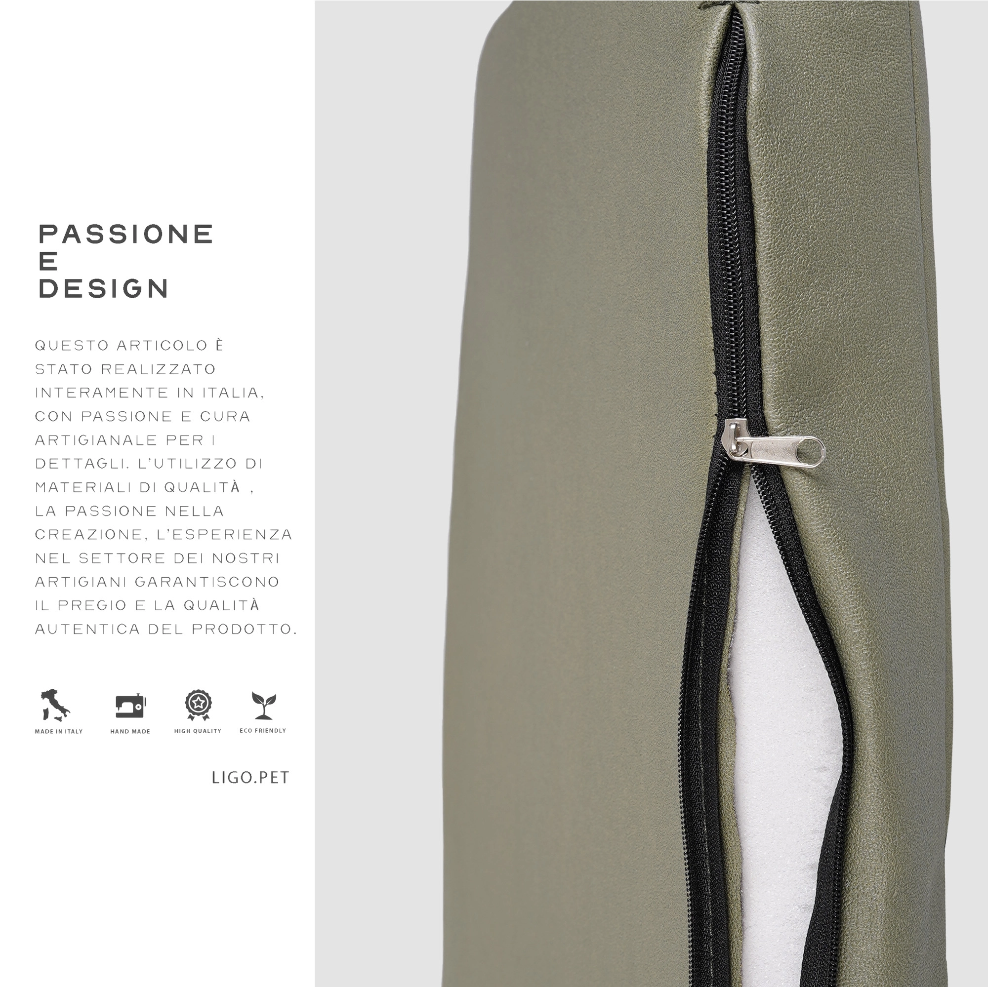 Cuccia con linee eleganti, si fonde completamente con l’arredamento di casa. Al suo interno sono presenti due cuscini, entrambi sfoderabili.