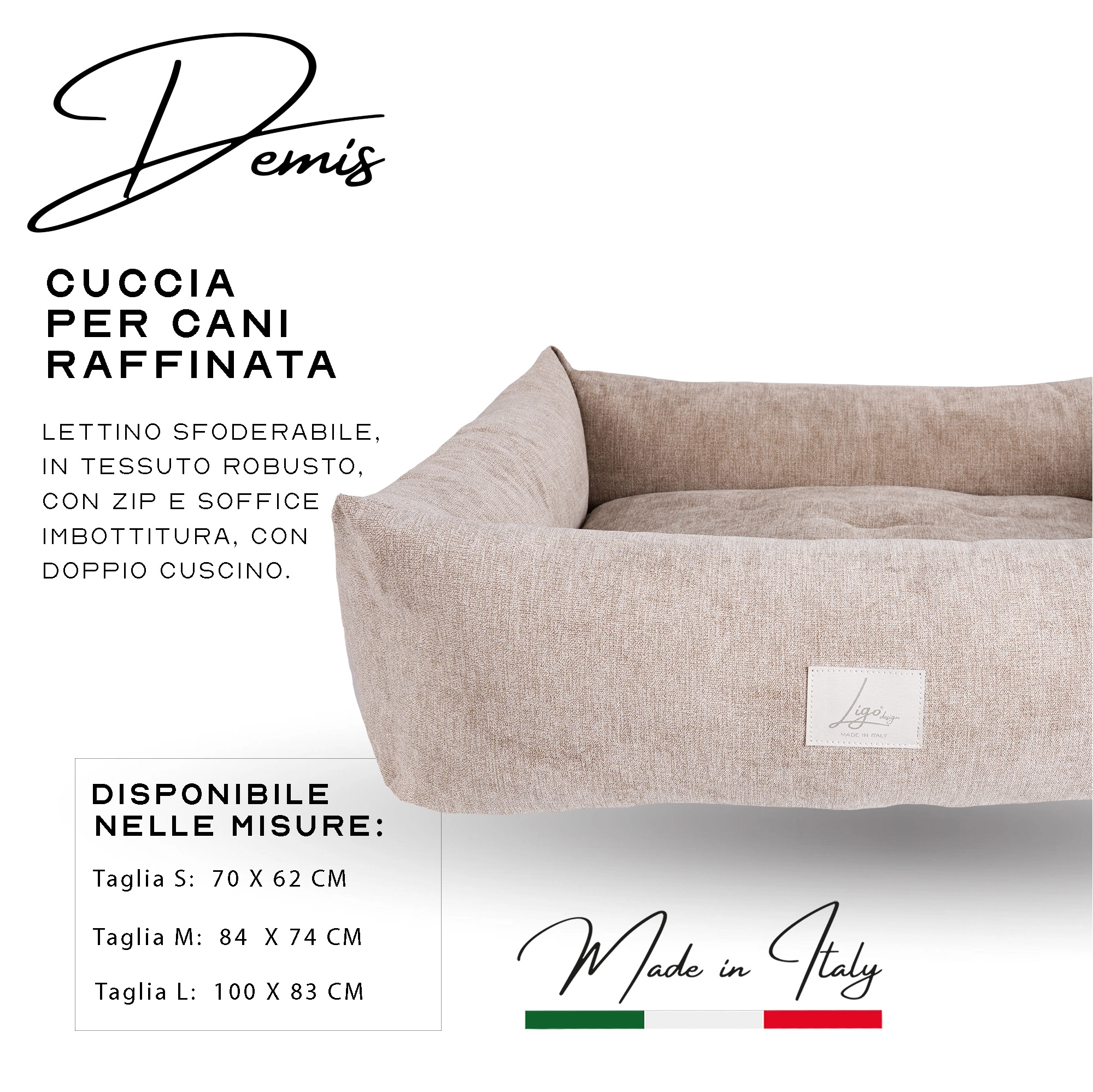 Cuccia elegante pensata anche per cani grandi. La speciale trapuntatura del cuscino e il cuscino di gommapiuma alla base, fa si che la forma e la morbidezza vengano mantenute nel tempo.