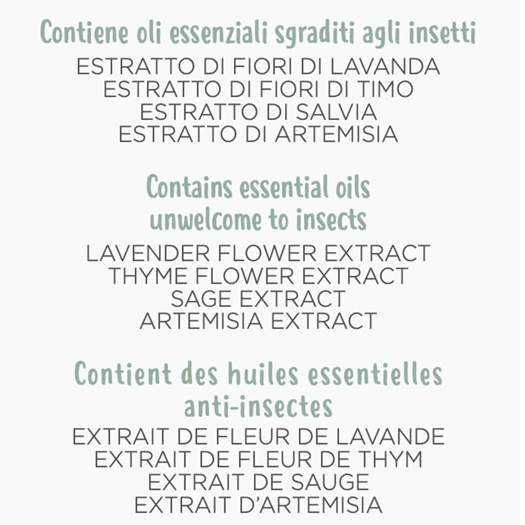 • Con estratto di fiori di lavanda, estratto di fiori di timo, estratto di salvia ed estratto di artemisia