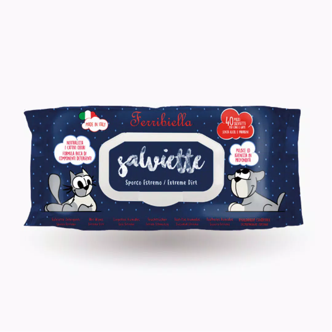 Le salviette igieniche Ferribiella per lo sporco estremo, studiate per la perfetta igiene quotidiana del tuo cane, gatto o cucciolo.
