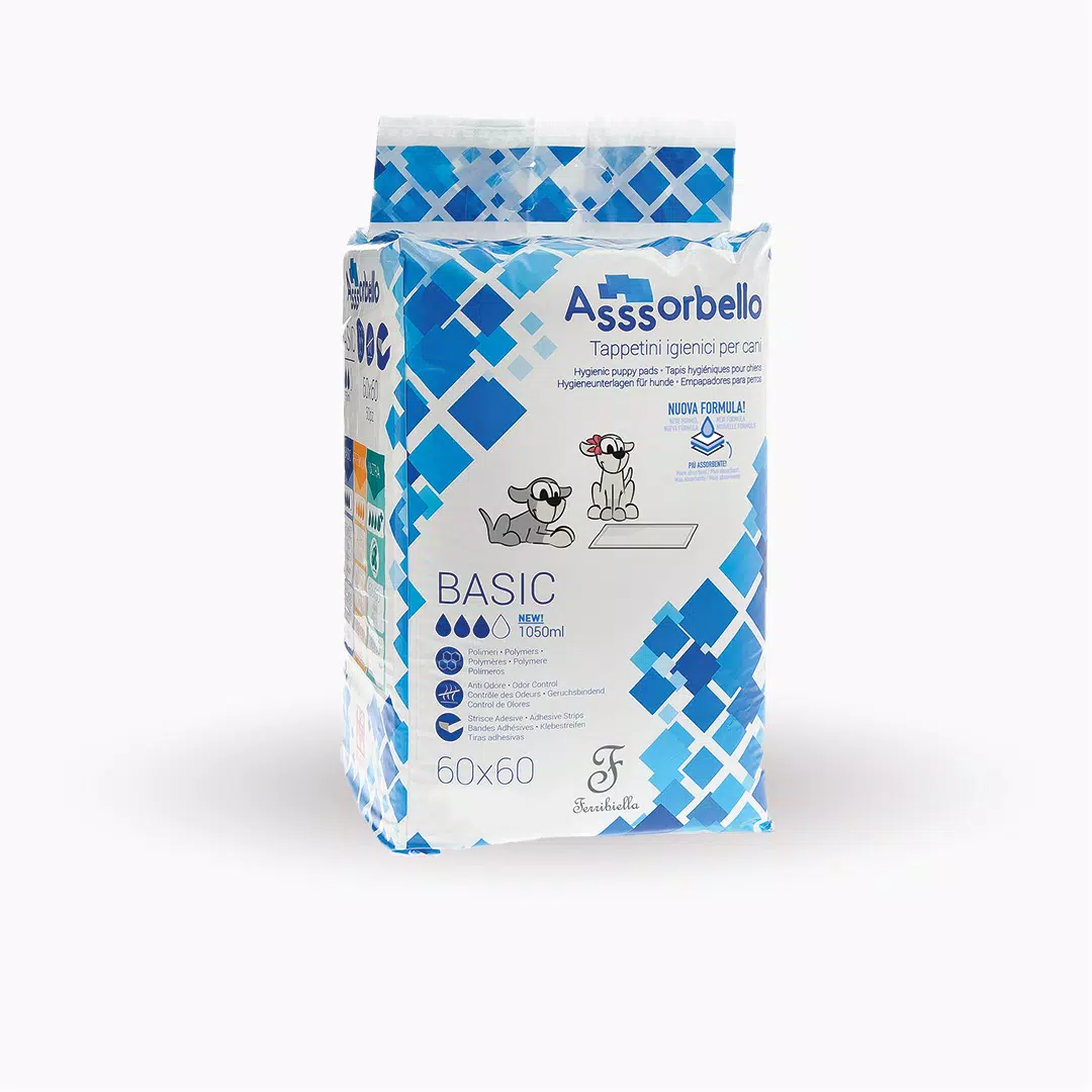 Tappetini igienici per cani, realizzati con una nuova formula che li rende più assorbenti.
