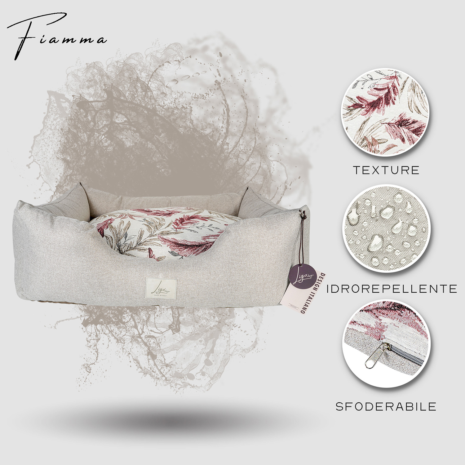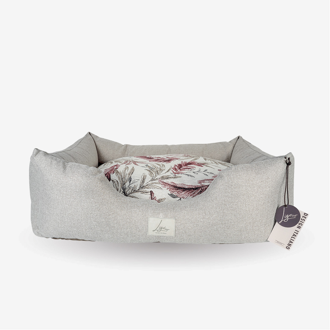 Cuccia con tessuto in Jacquard, composto da policotone, una miscela di tessuti più resistente del cotone ma più naturale del poliestere, più gradevole, sicuro e comodo.