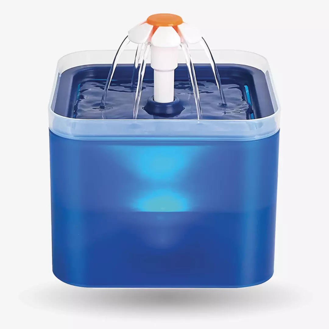 Un’oasi di benessere per felini: fontanella con filtro multiplo, flusso d’acqua irresistibile, alimentazione USB, acqua purificata ai carboni attivi, luce a led notturna e silenziosità assoluta.