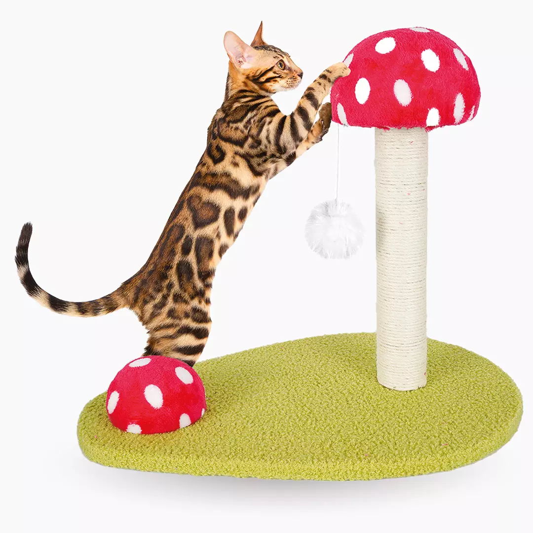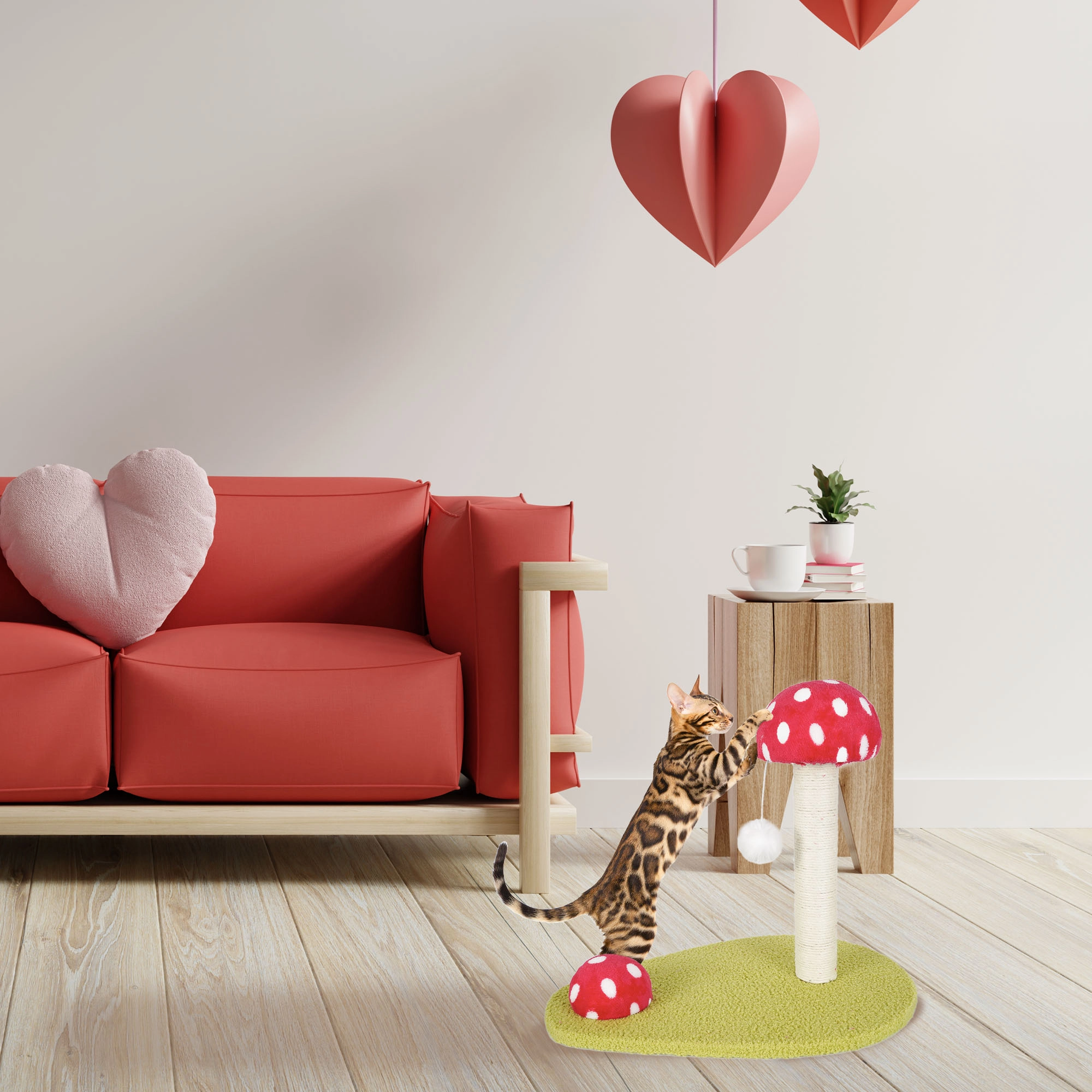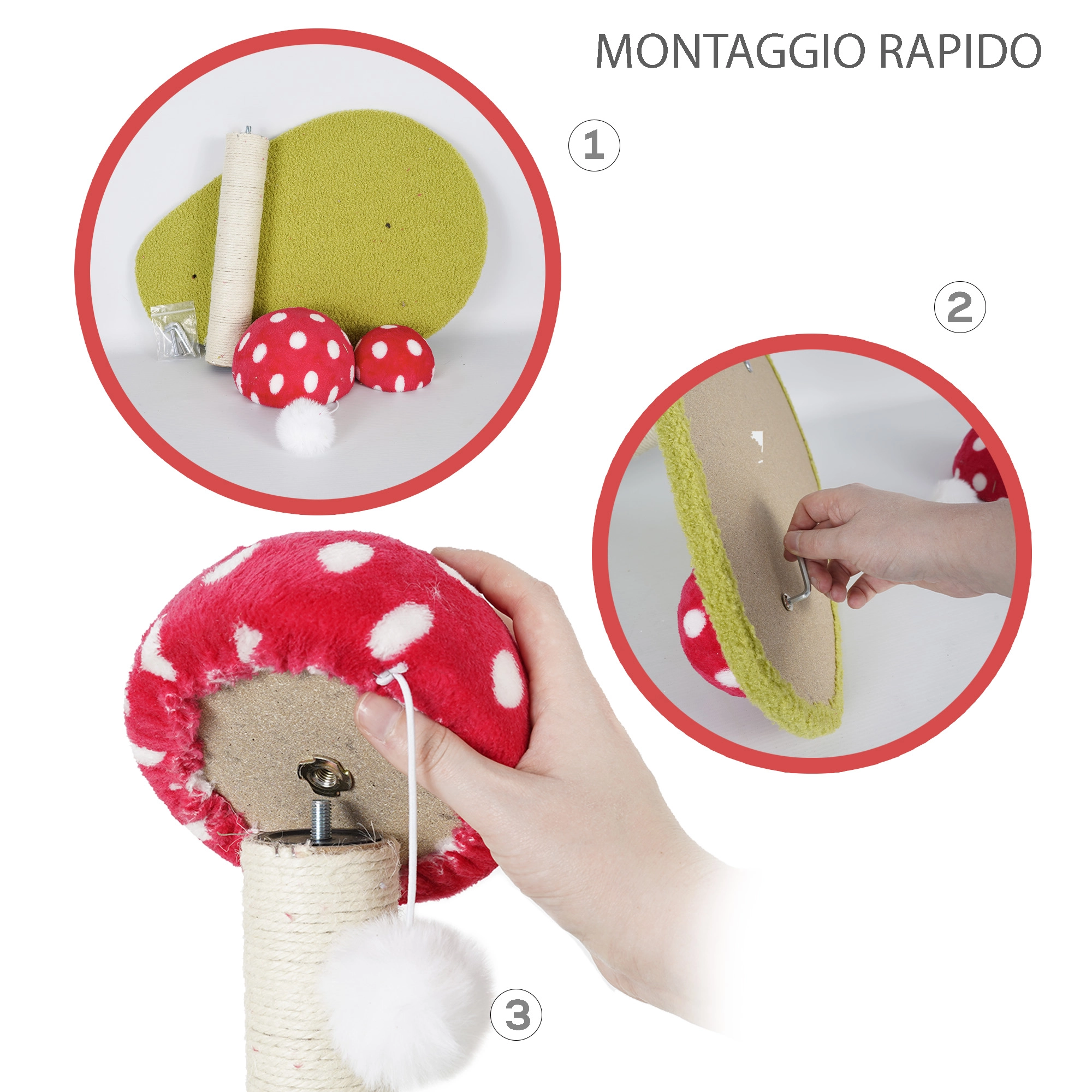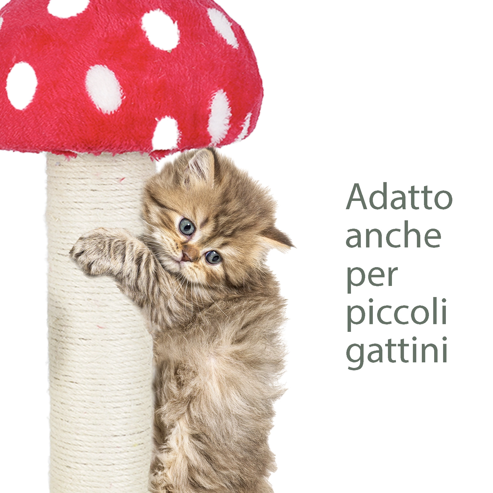 Tiragraffi con base arrotondata, palo in juta graffiabile e pallina in peluche.