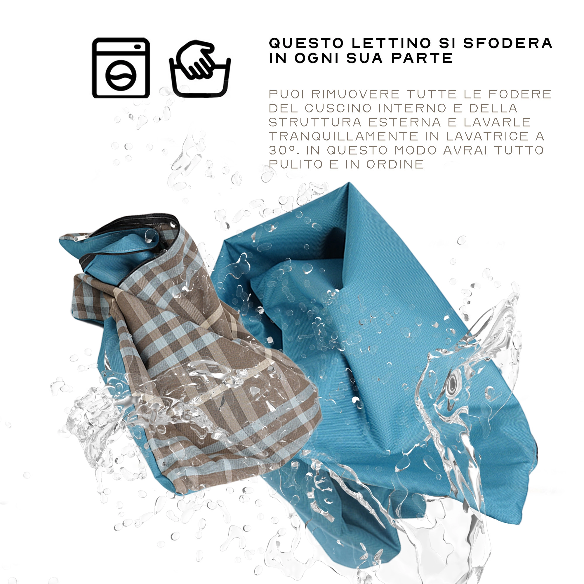 Cuccia realizzata con tessuto Idrocordex, noto per le sue proprietà anallergiche e atossiche.