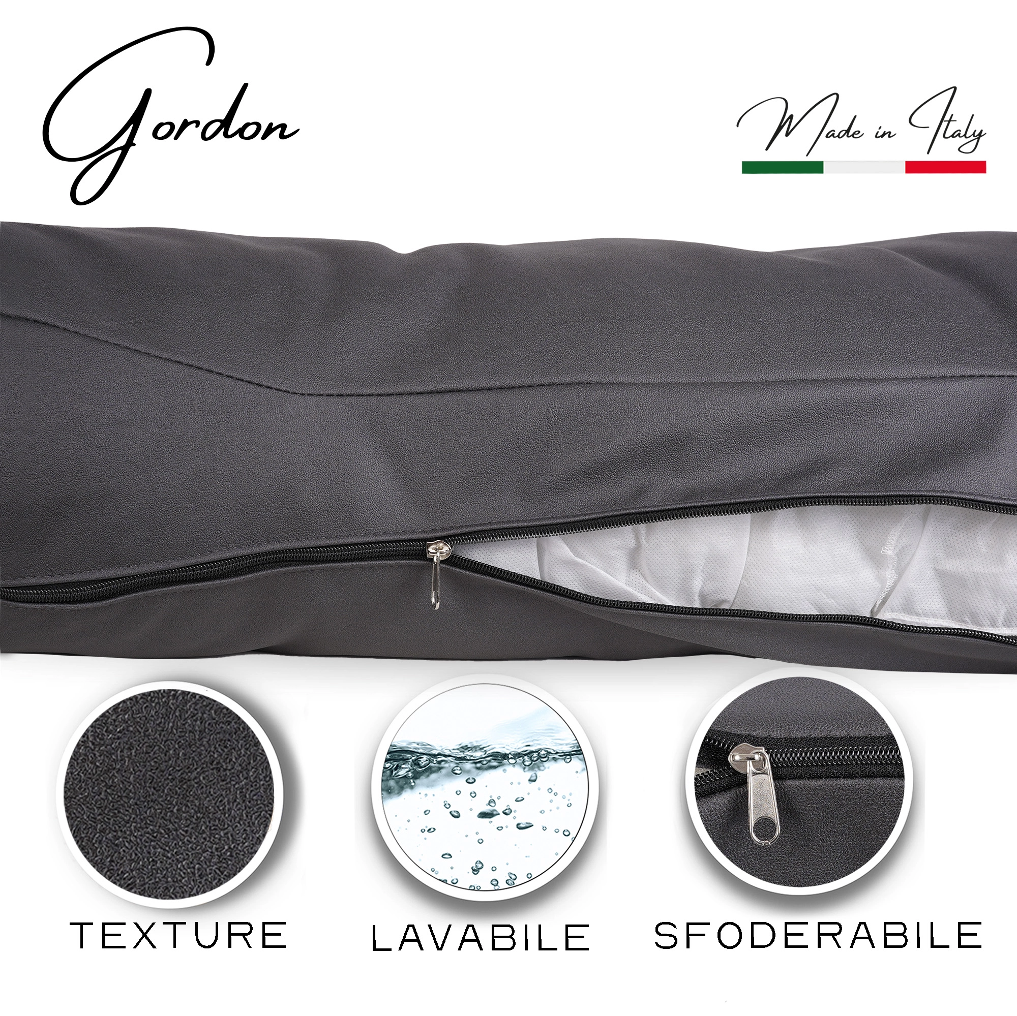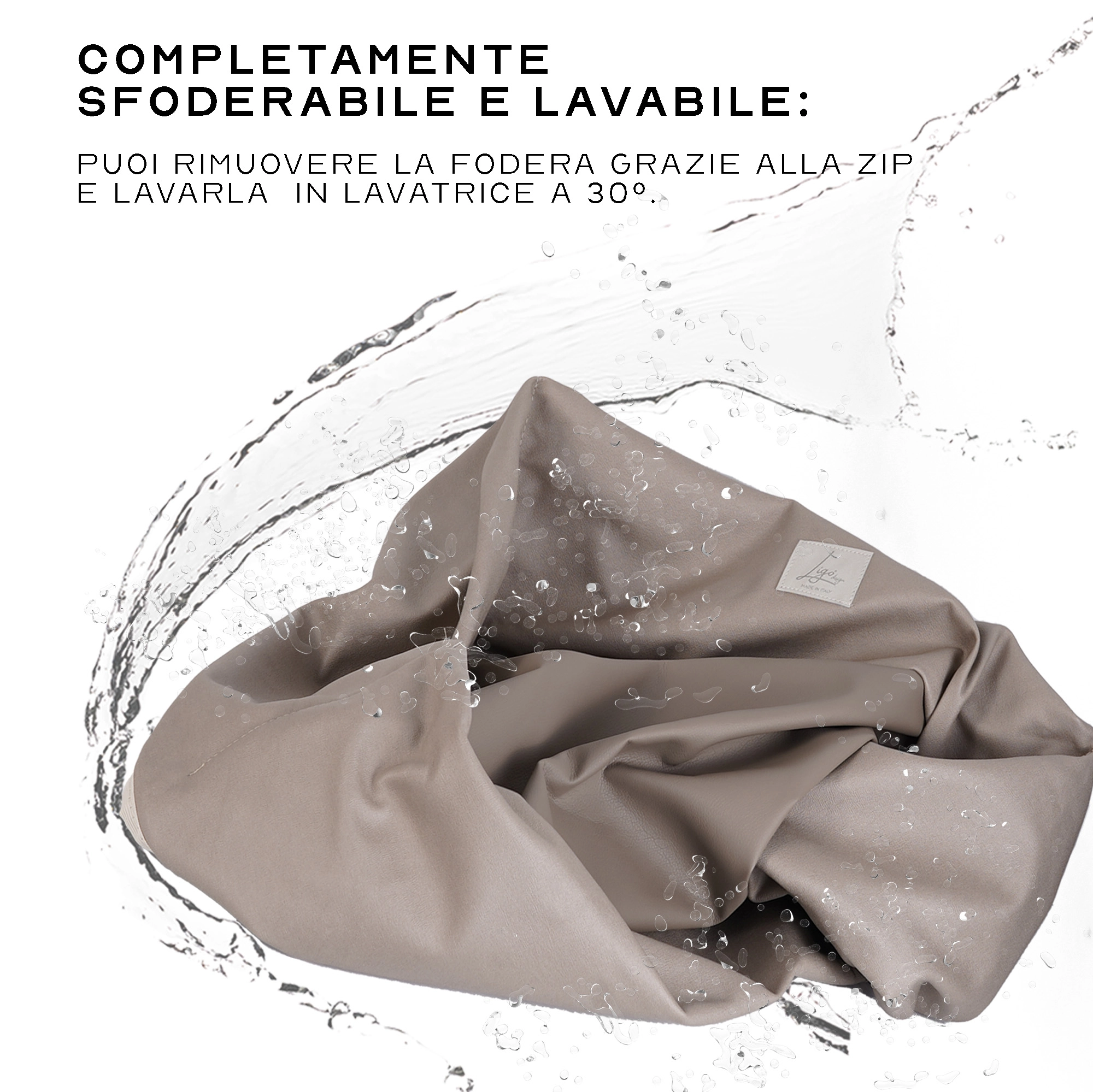 Cuccia a forma ricurva, più alta ai lati, per sostenere la testa del cane durante il riposo.