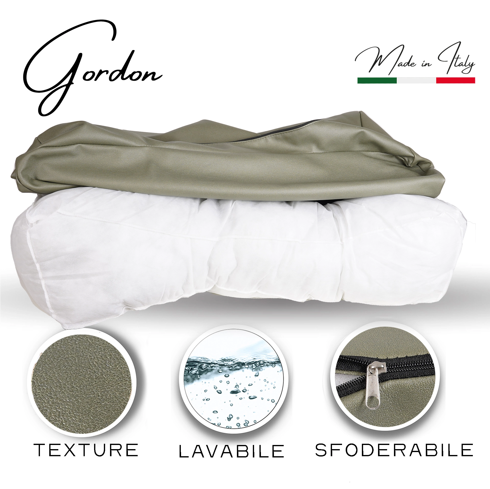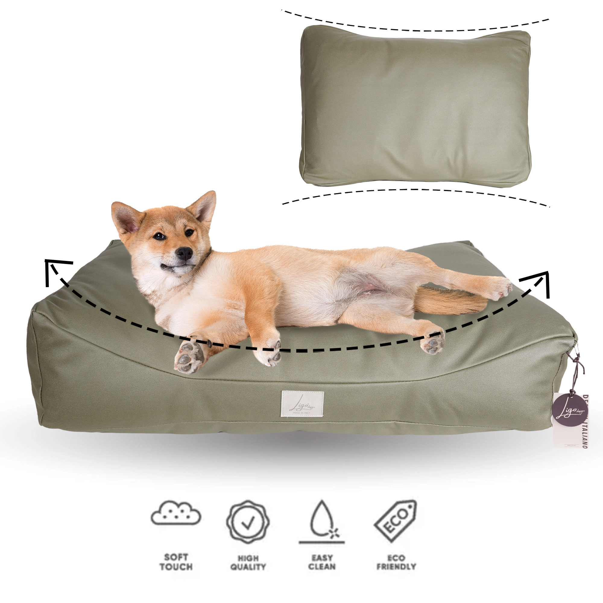 Cuccia a forma ricurva, più alta ai lati, per sostenere la testa del cane durante il riposo.