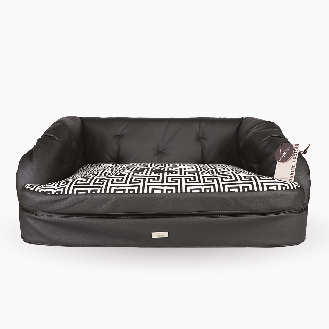 Divano in ecopelle, con cuscino in tessuto digitale con fantasia. La bellezza della stoffa e la pienezza di questo cuscino abbellirà gli ambienti nel quale lo posizionerai. Può essere considerato un oggetto d’arredamento per la tua casa.
