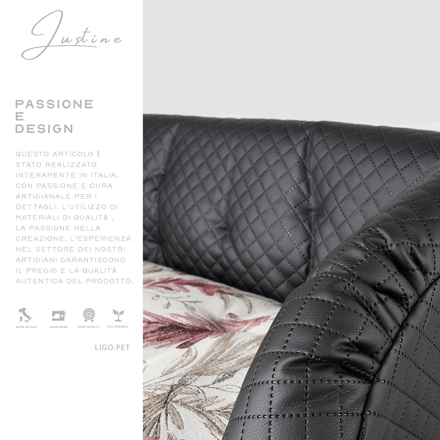 Divano in ecopelle, con cuscino in tessuto digitale con fantasia. La bellezza della stoffa e la pienezza di questo cuscino abbellirà gli ambienti nel quale lo posizionerai. Può essere considerato un oggetto d’arredamento per la tua casa.