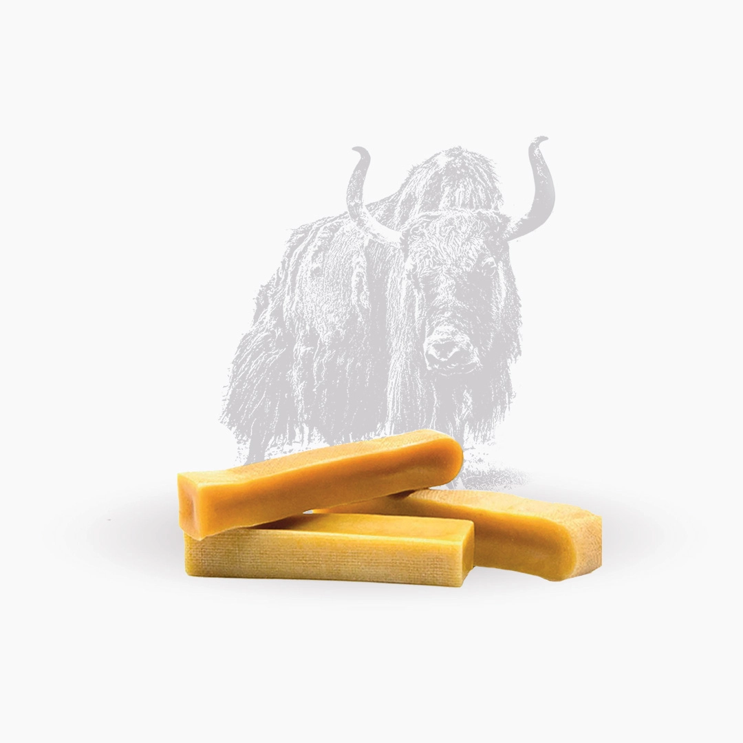 Snack naturale per cani, bastone al formaggio creato con latte di yak.