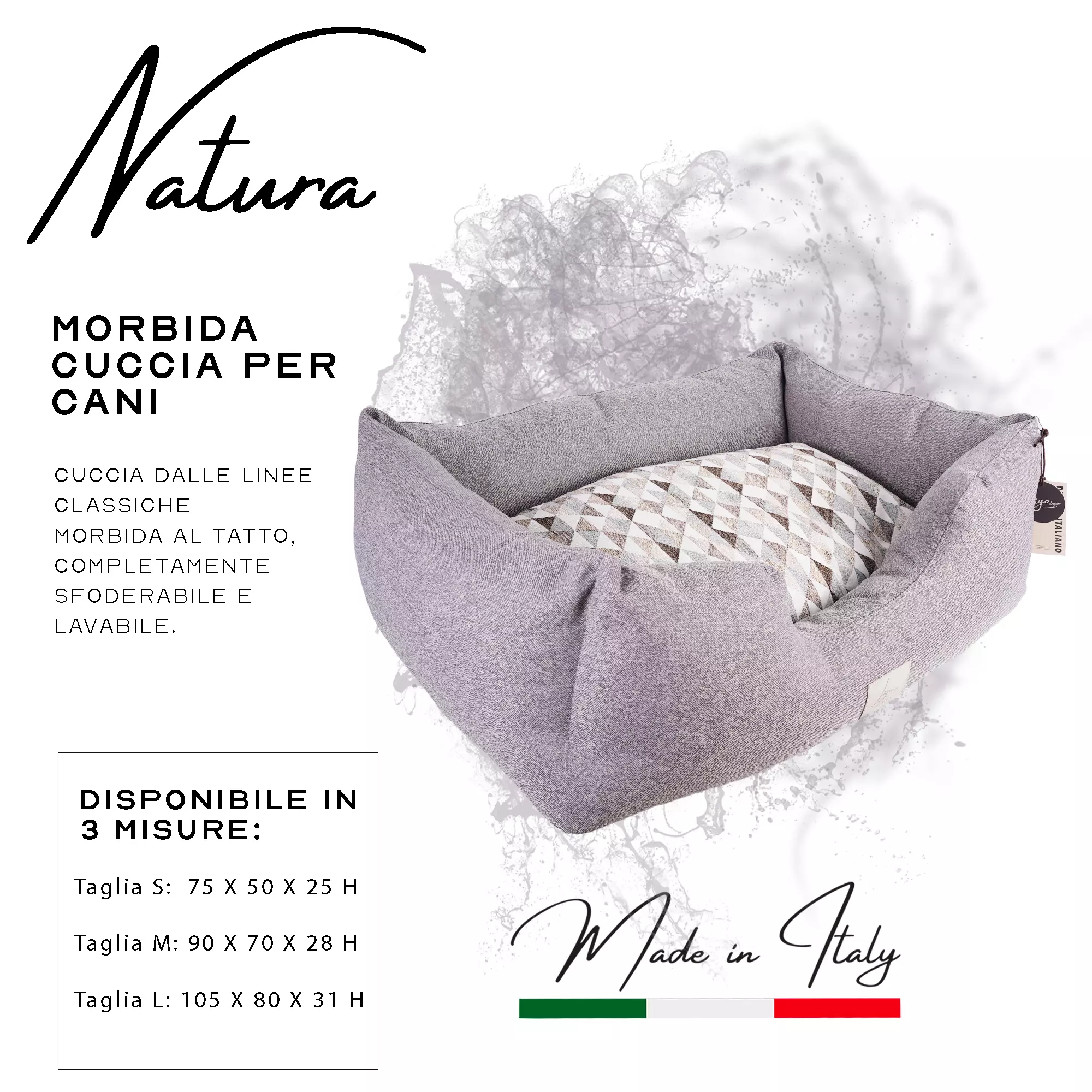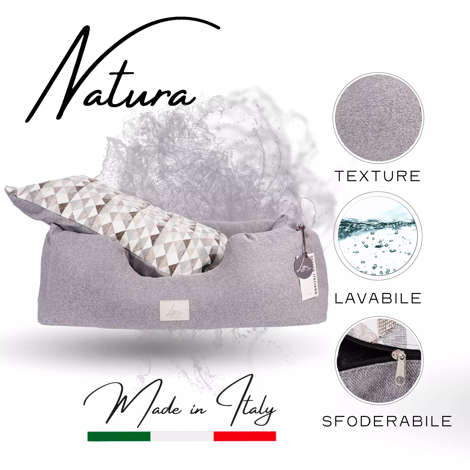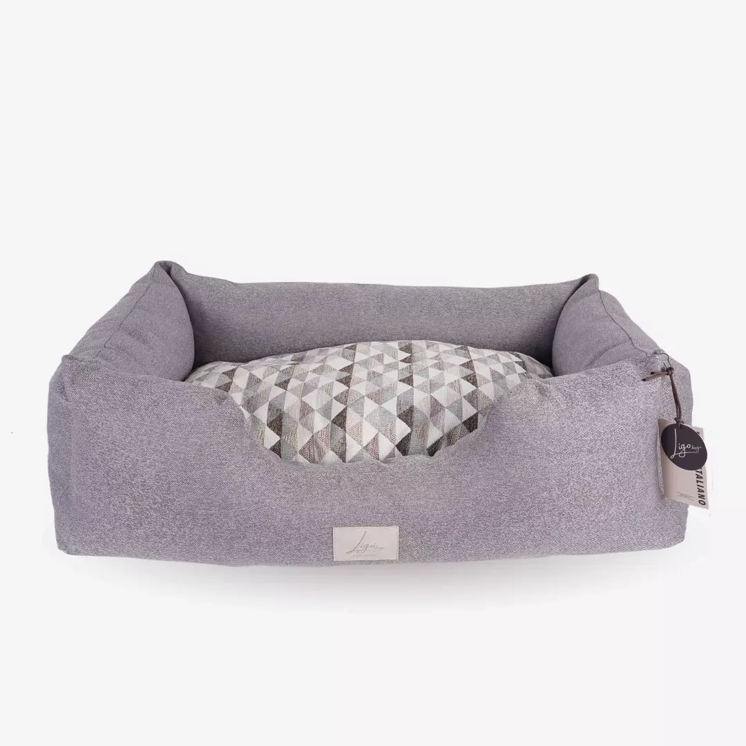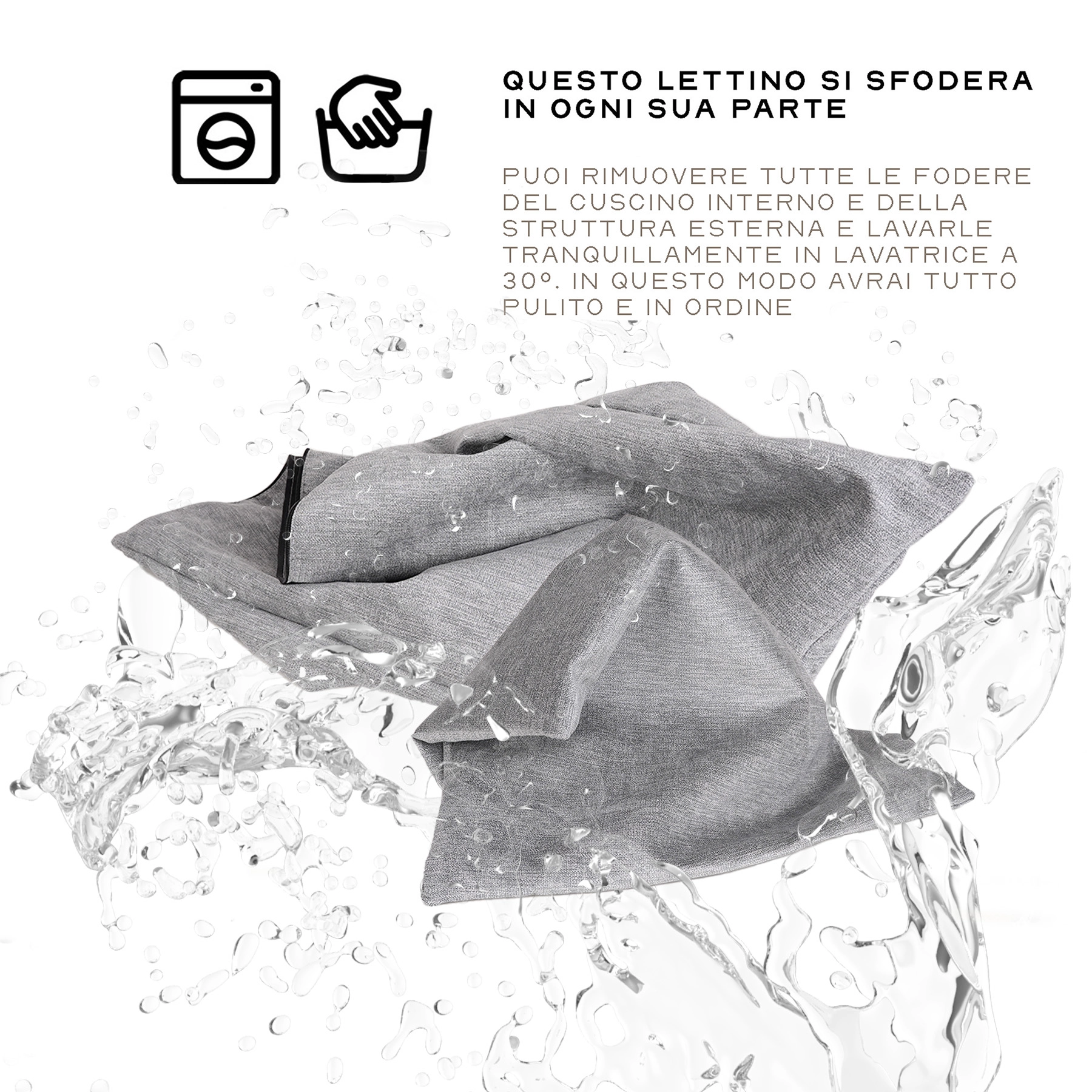 Cuccia elegante con le sue linee classiche si fonde completamente con l’arredamento di casa. Realizzato con tessuto in Jacquard composto da policotone, una miscela di tessuti più resistente del cotone ma più naturale del poliestere, più gradevole, sicuro e comodo.