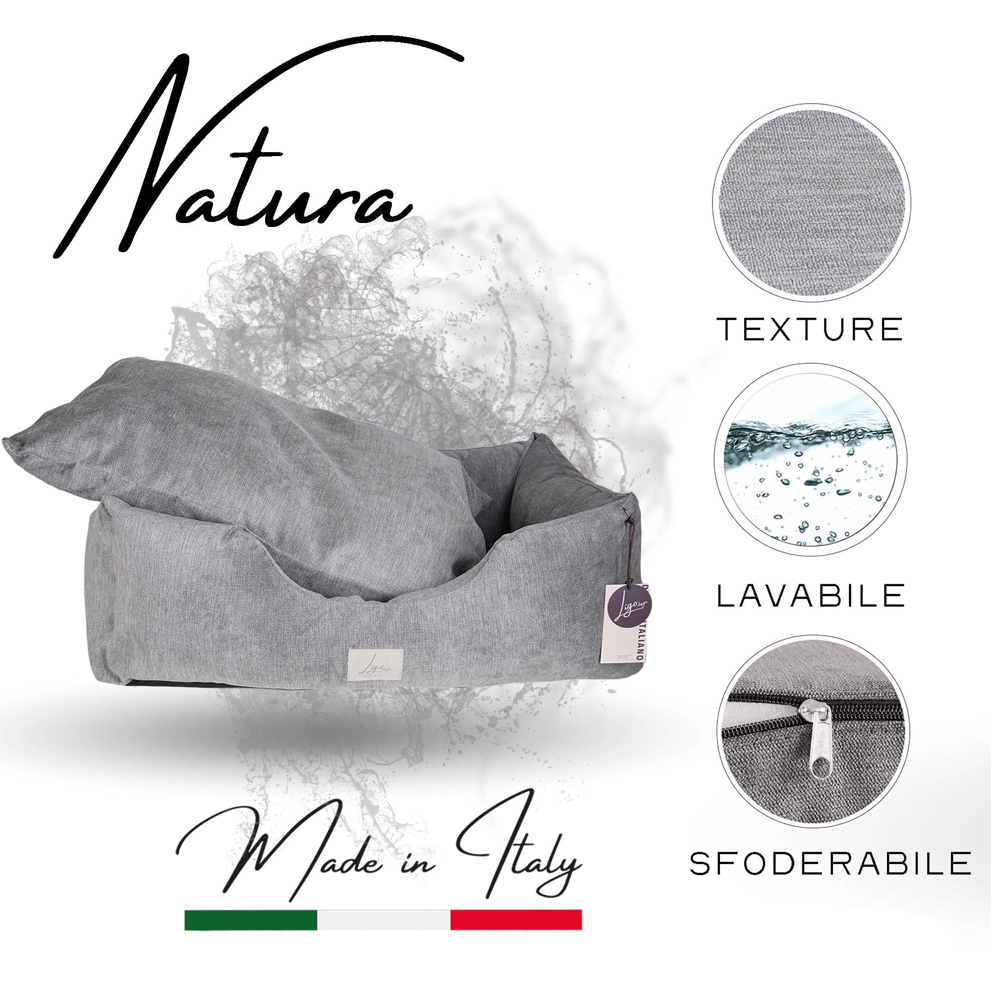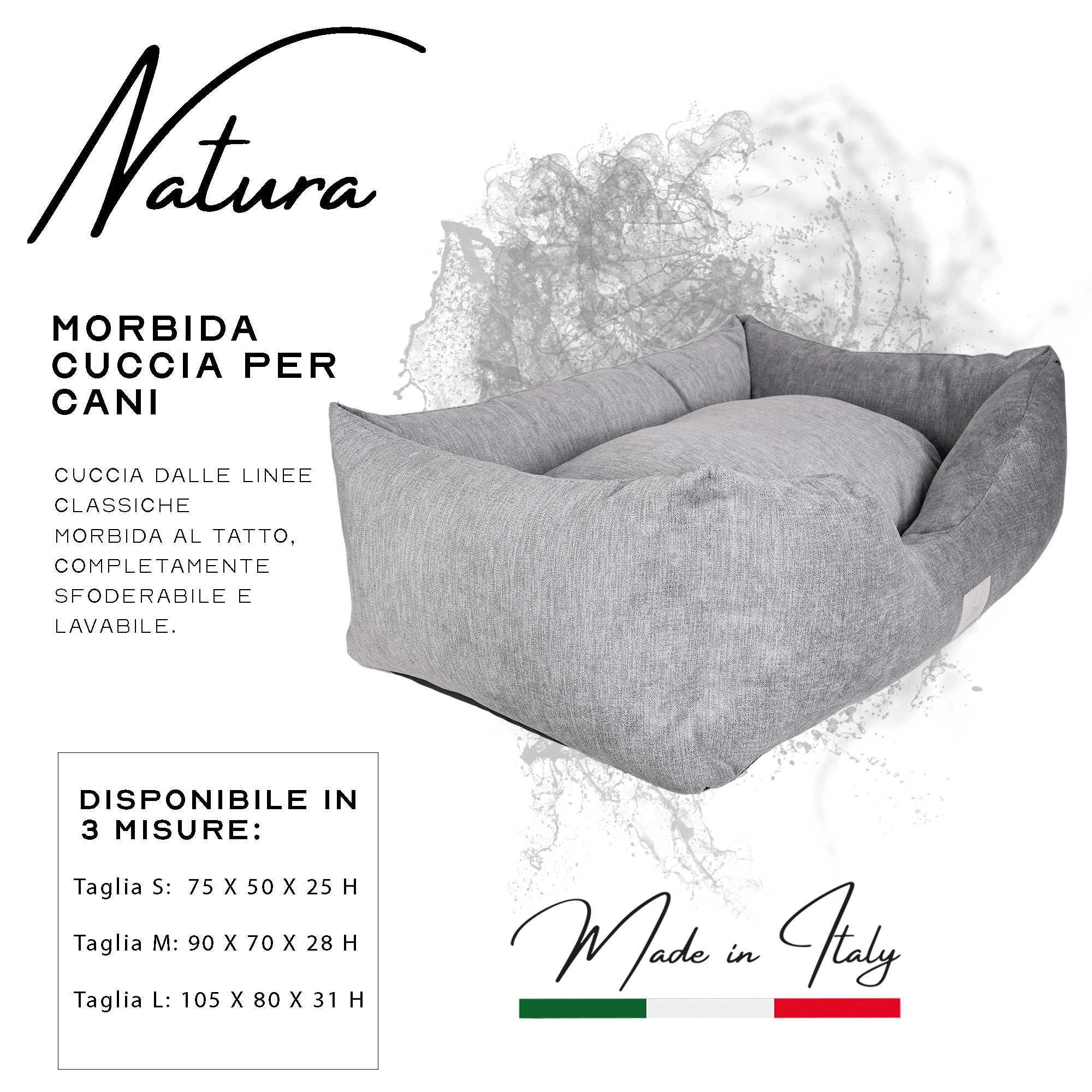 Cuccia elegante con le sue linee classiche si fonde completamente con l’arredamento di casa. Realizzato con tessuto in Jacquard composto da policotone, una miscela di tessuti più resistente del cotone ma più naturale del poliestere, più gradevole, sicuro e comodo.