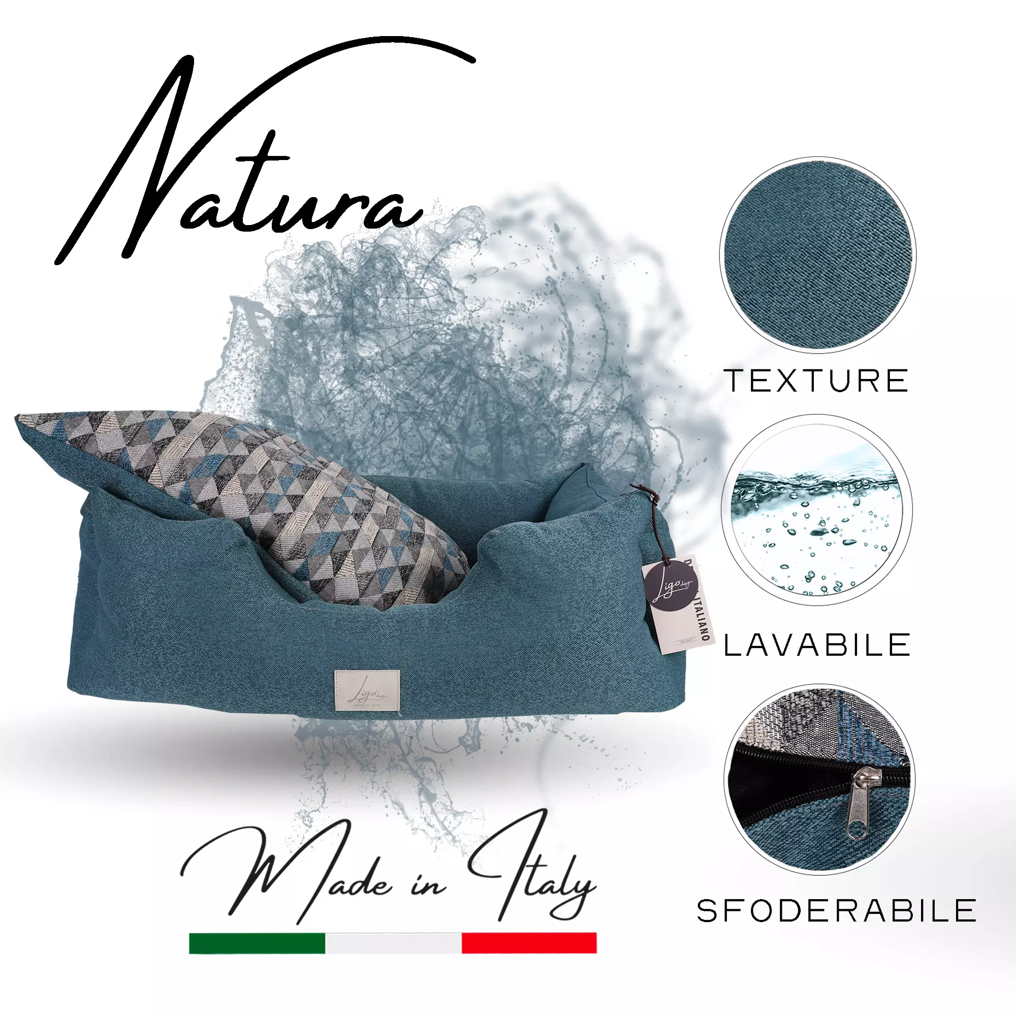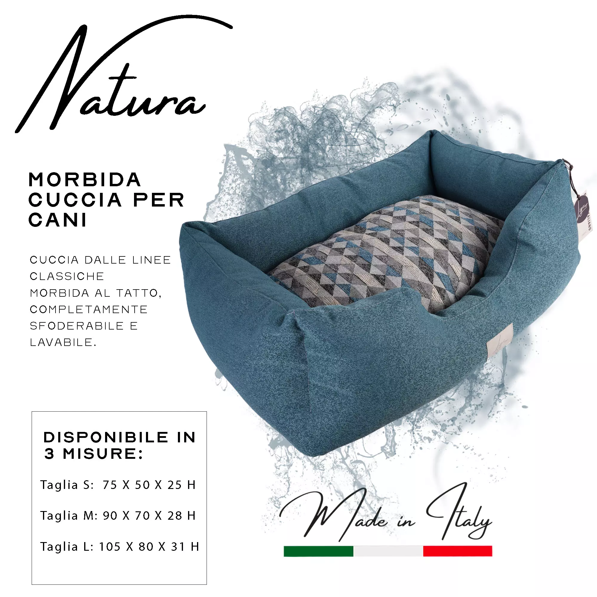 Cuccia elegante con le sue linee classiche si fonde completamente con l’arredamento di casa. Realizzato con tessuto in Jacquard composto da policotone, una miscela di tessuti più resistente del cotone ma più naturale del poliestere, più gradevole, sicuro e comodo.