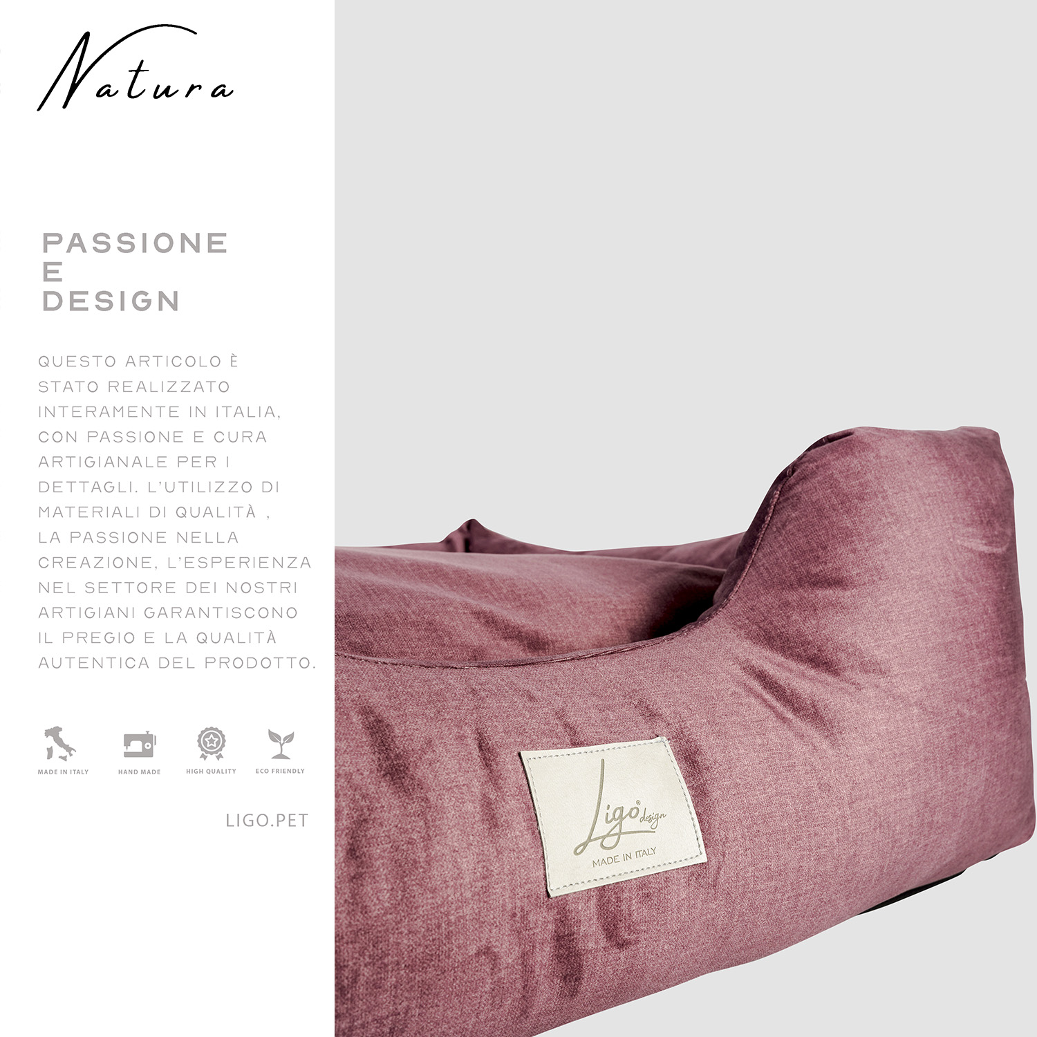 Cuccia elegante con le sue linee classiche si fonde completamente con l’arredamento di casa. Realizzato con tessuto in Jacquard composto da policotone, una miscela di tessuti più resistente del cotone ma più naturale del poliestere, più gradevole, sicuro e comodo.