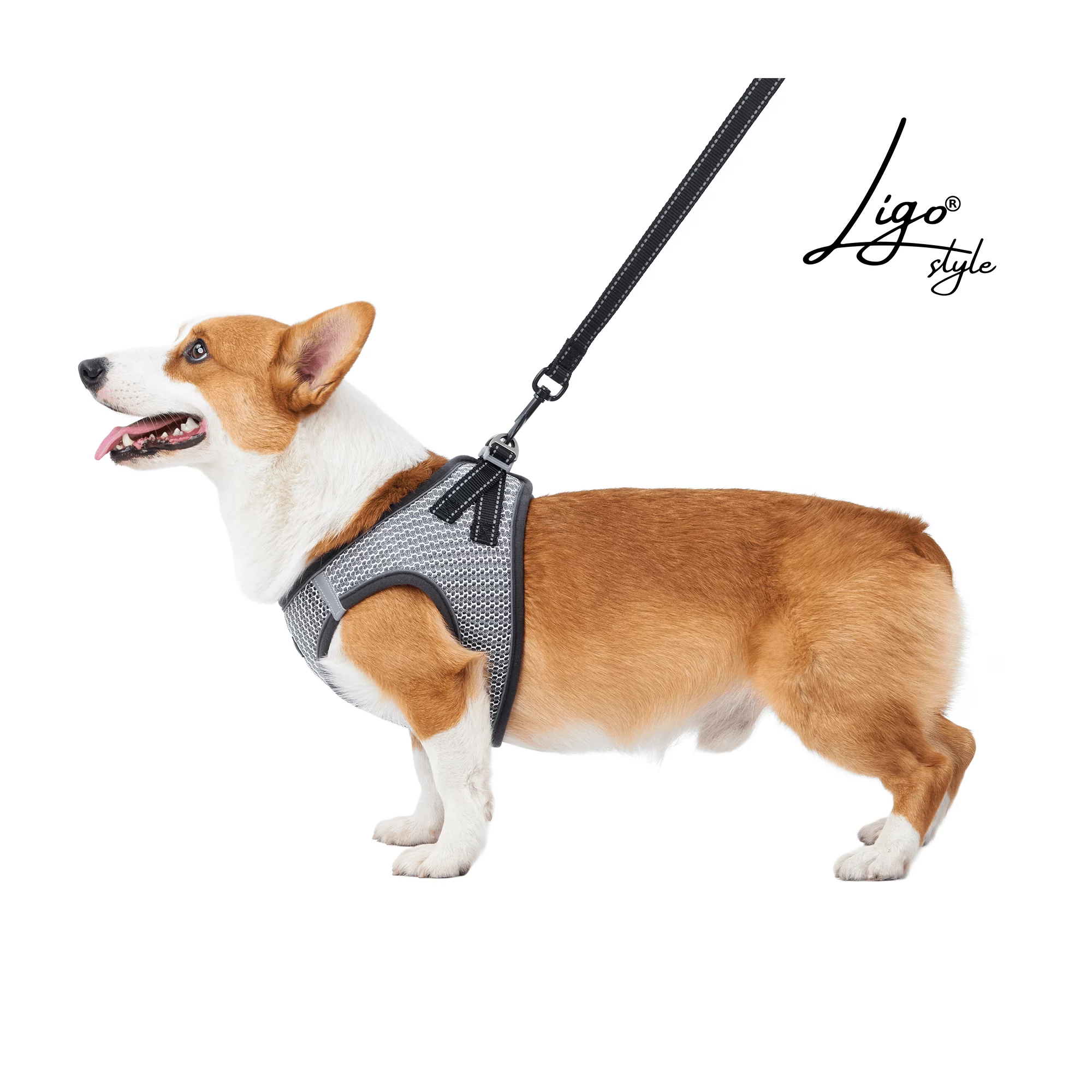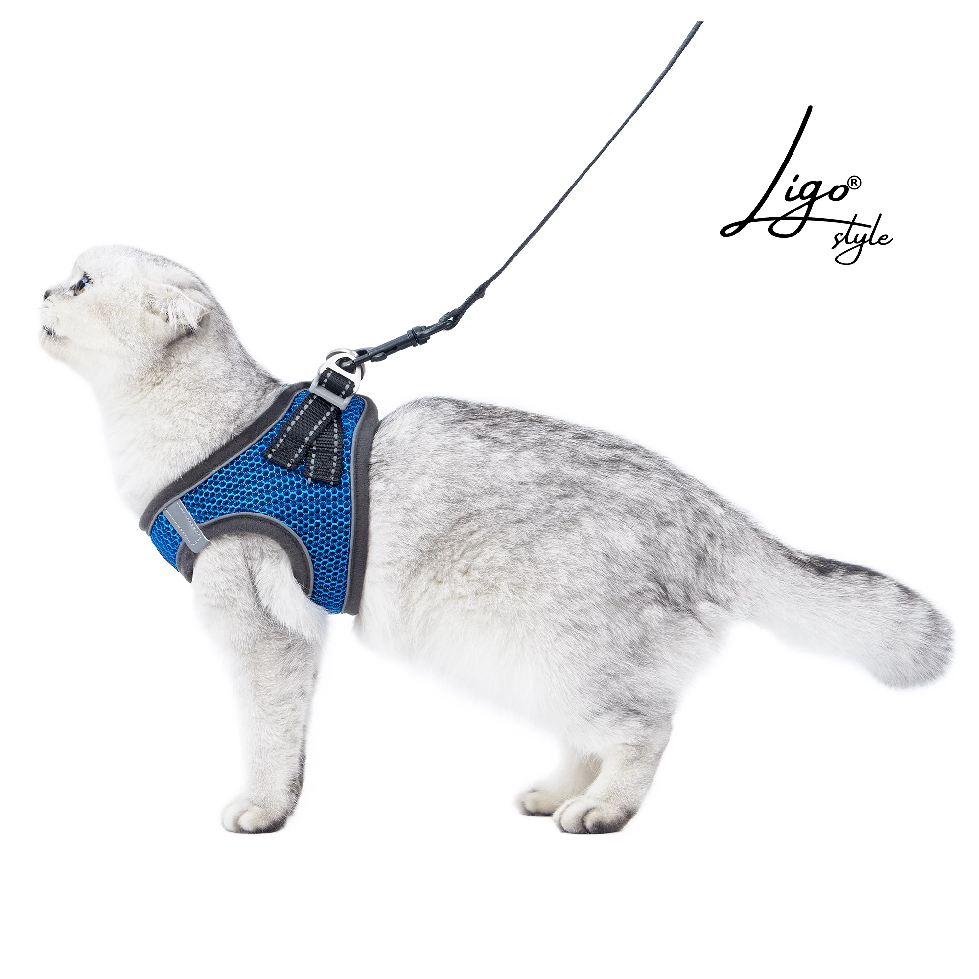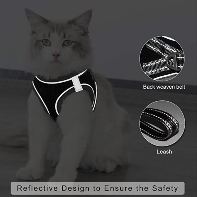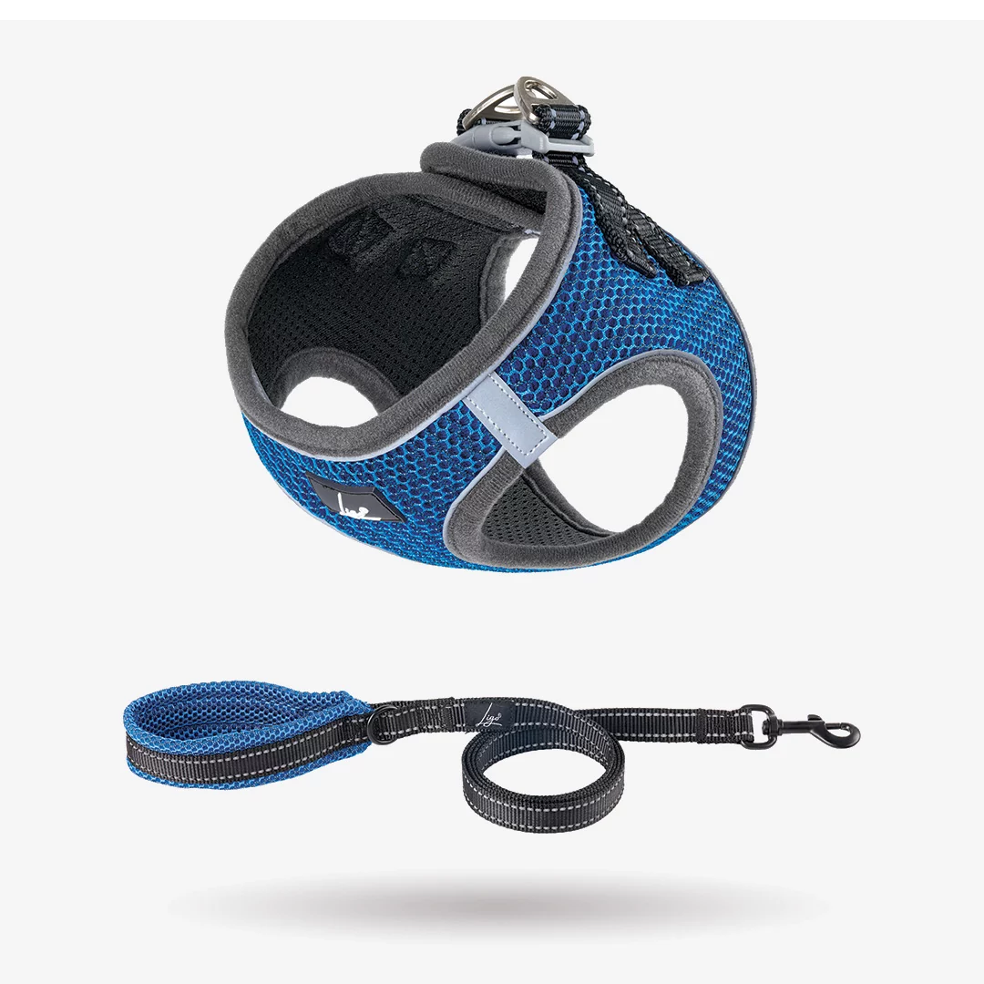 Pettorina per gatti e cani di piccola taglia con guinzaglio. Tessuto a nido d’ape traspirante e riflettente.