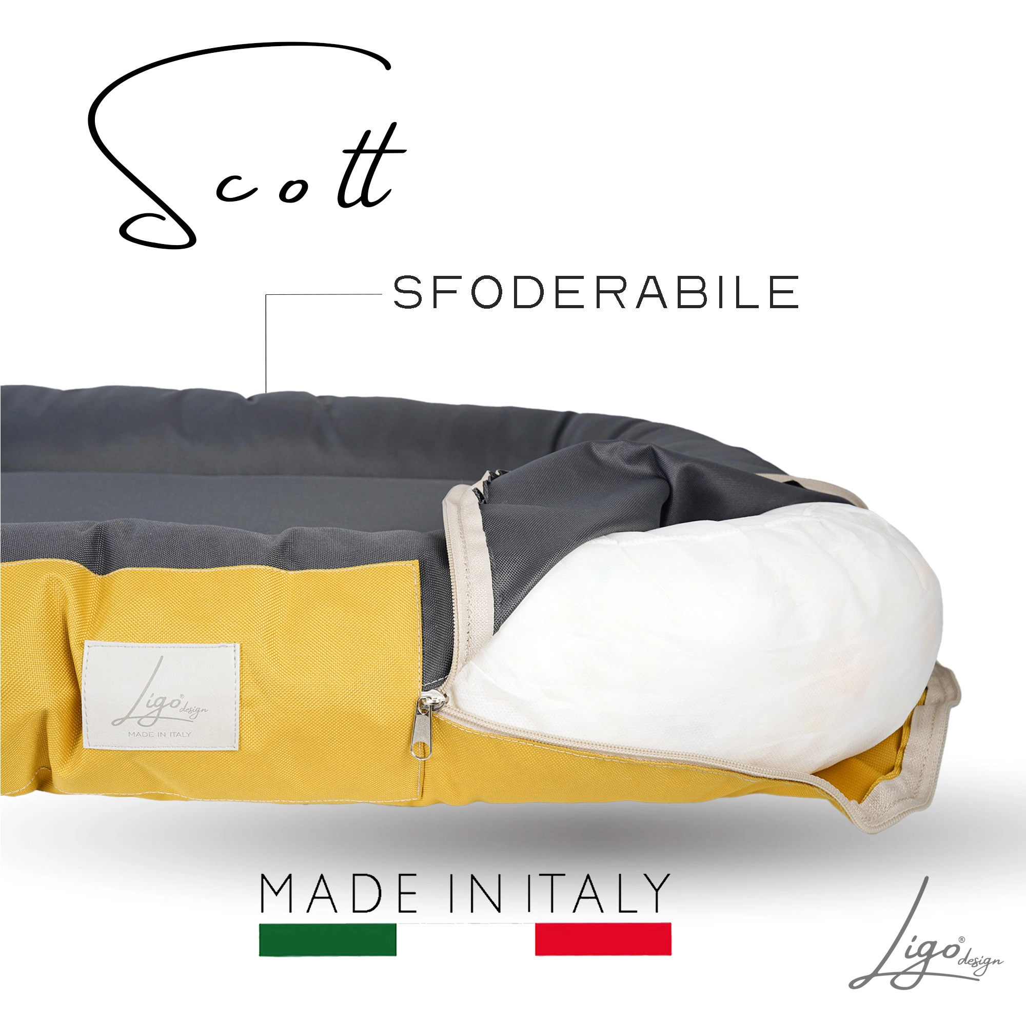 • Sfoderabile; 3 zip, due sul lato esterno e una sul retro del cuscino interno