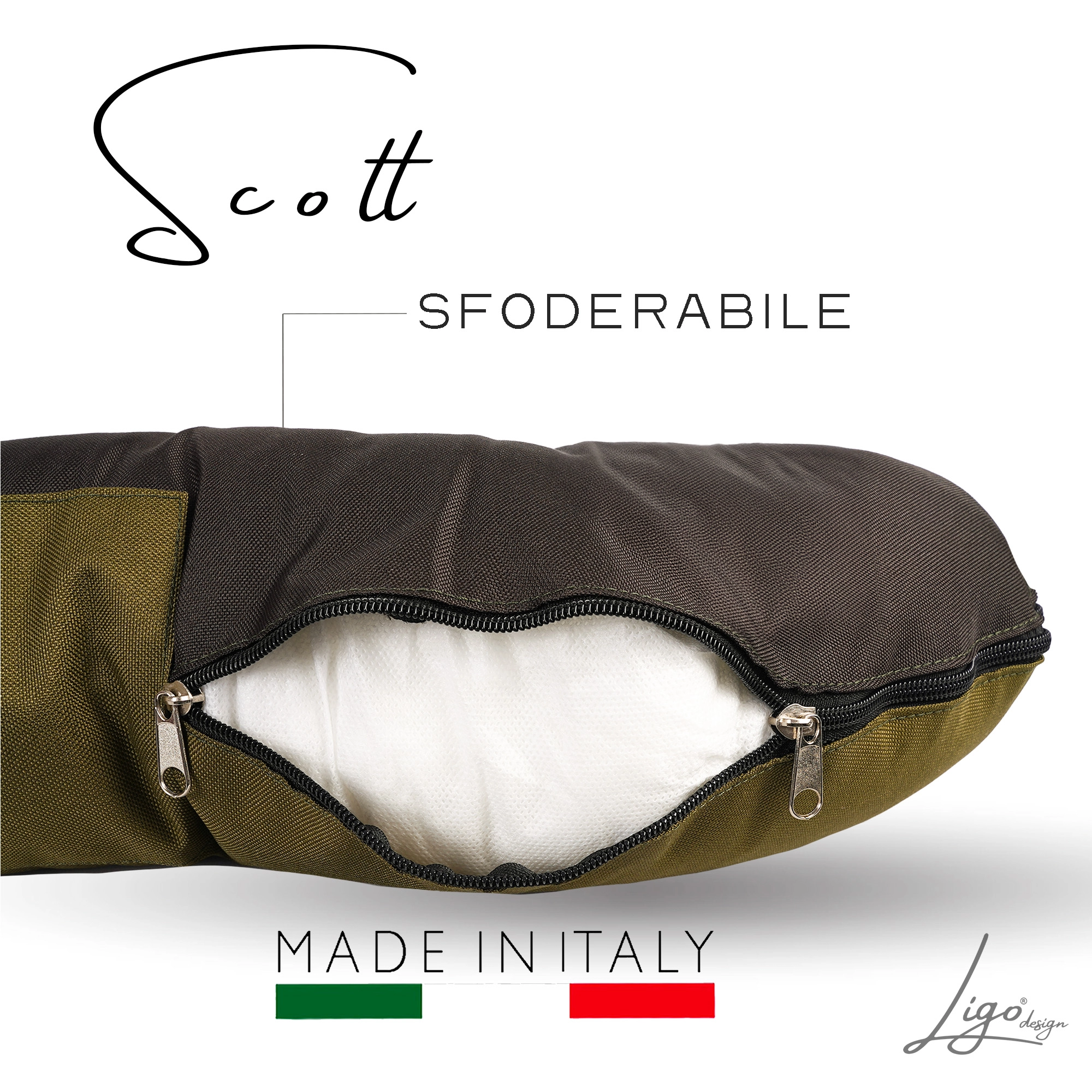 • Sfoderabile; 3 zip, due sul lato esterno e una sul retro del cuscino interno