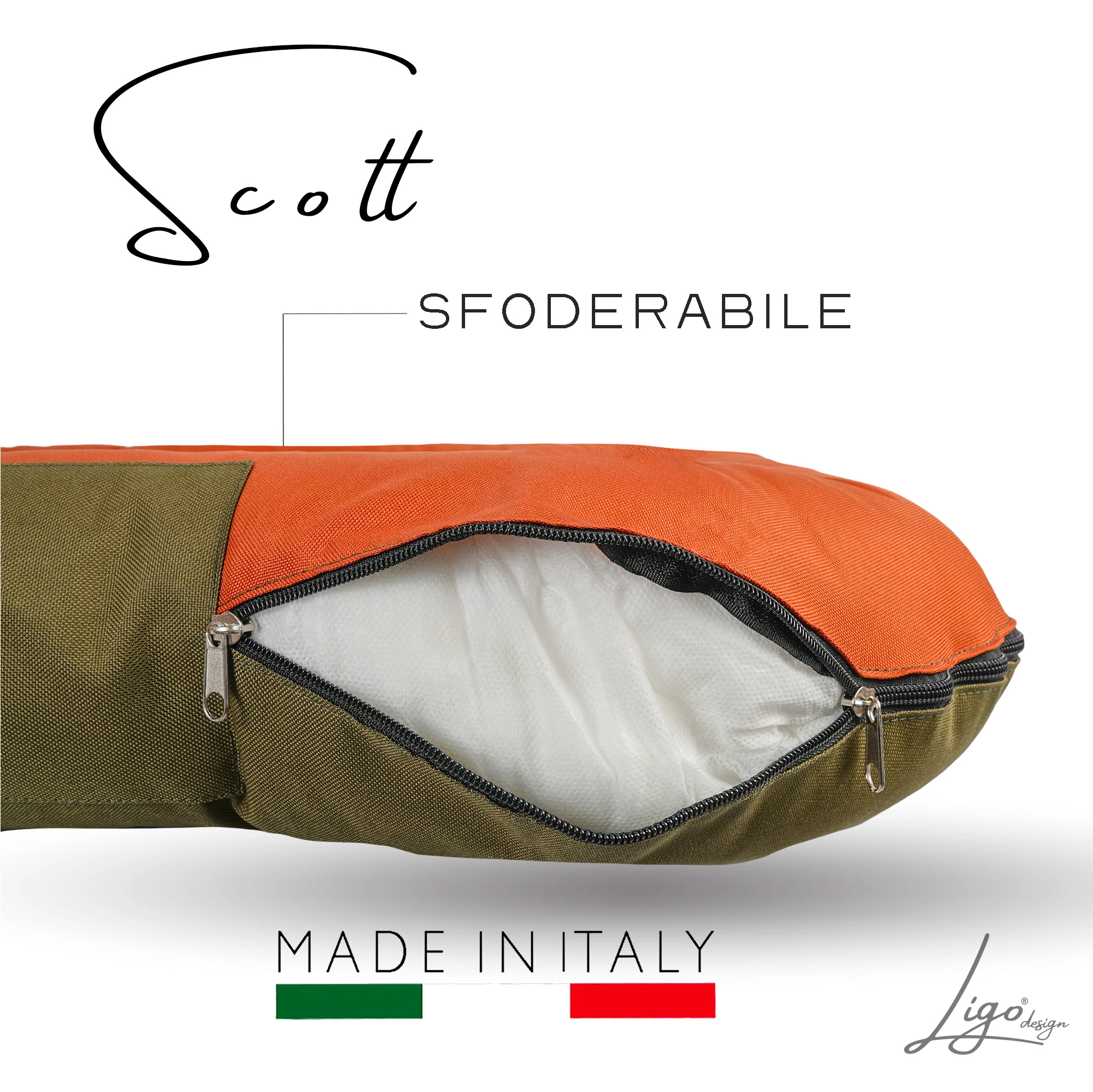 • Sfoderabile; 3 zip, due sul lato esterno e una sul retro del cuscino interno