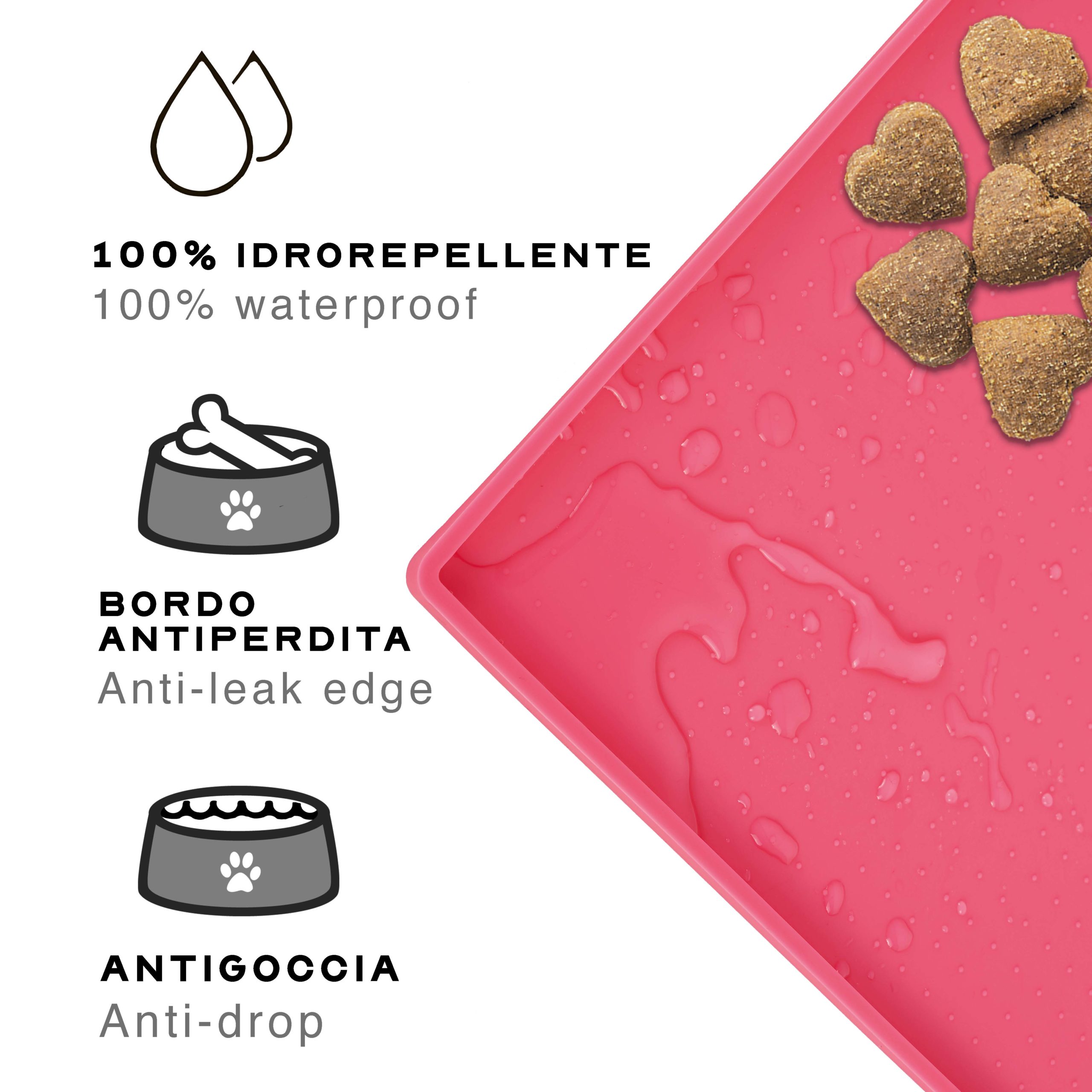 Tappetino in silicone robusto e duraturo, resiste senza problemi a un utilizzo continuativo e ripetuto all’interno o all’esterno.