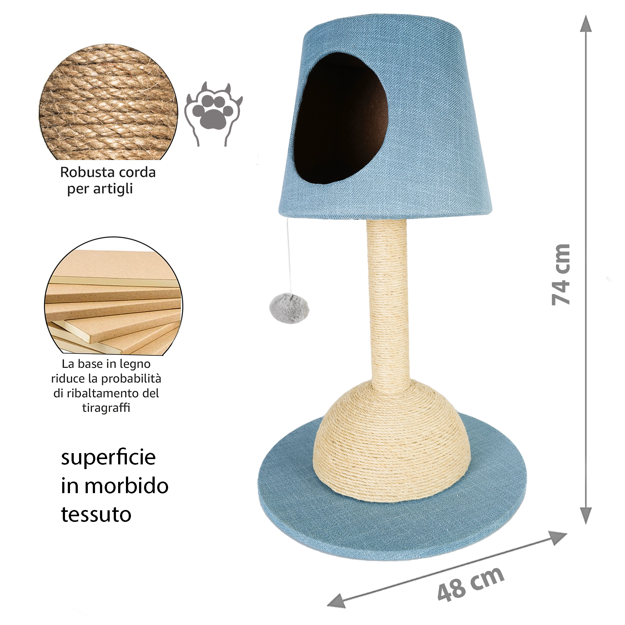 Il materiale più confortevole e morbido, dona una sensazione di sicurezza e protezione aiutando l’animale a rilassarsi.