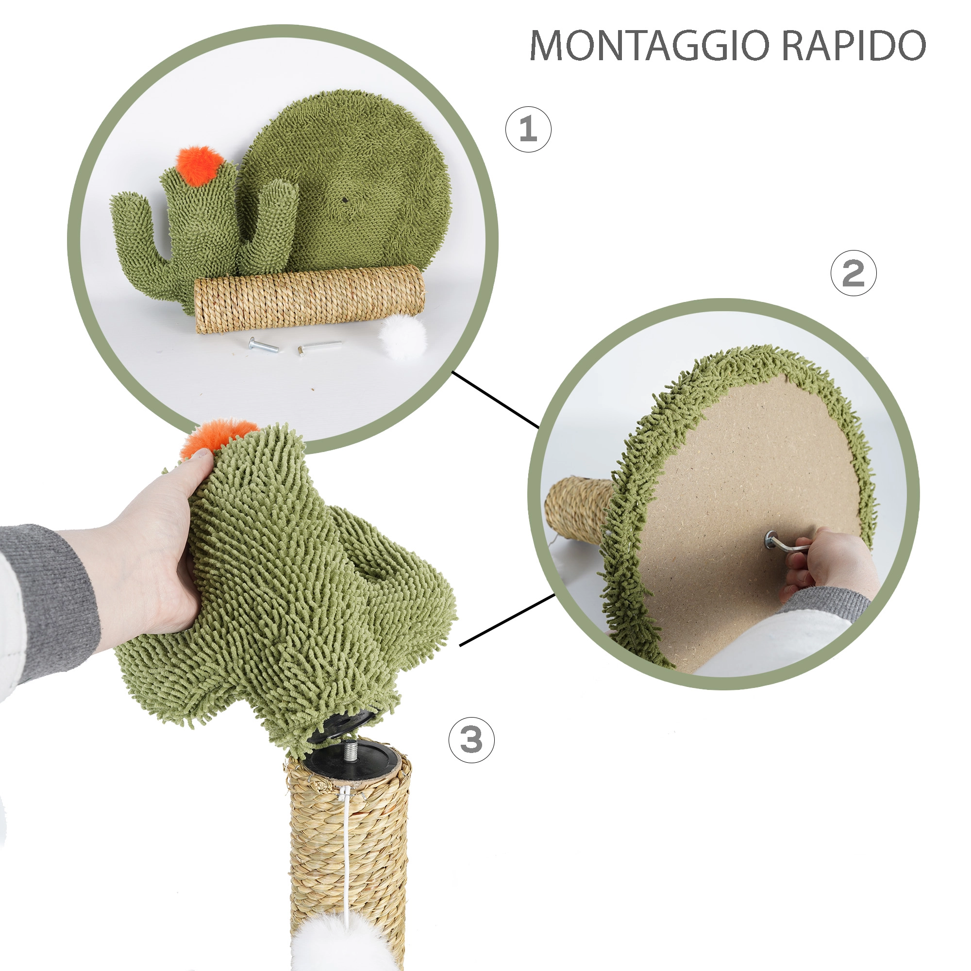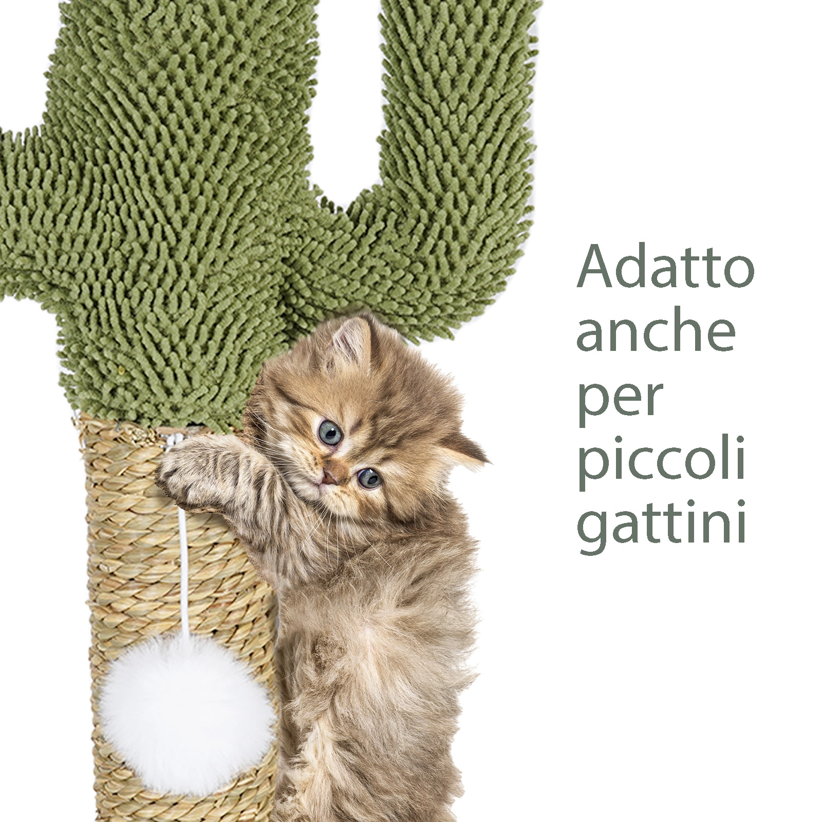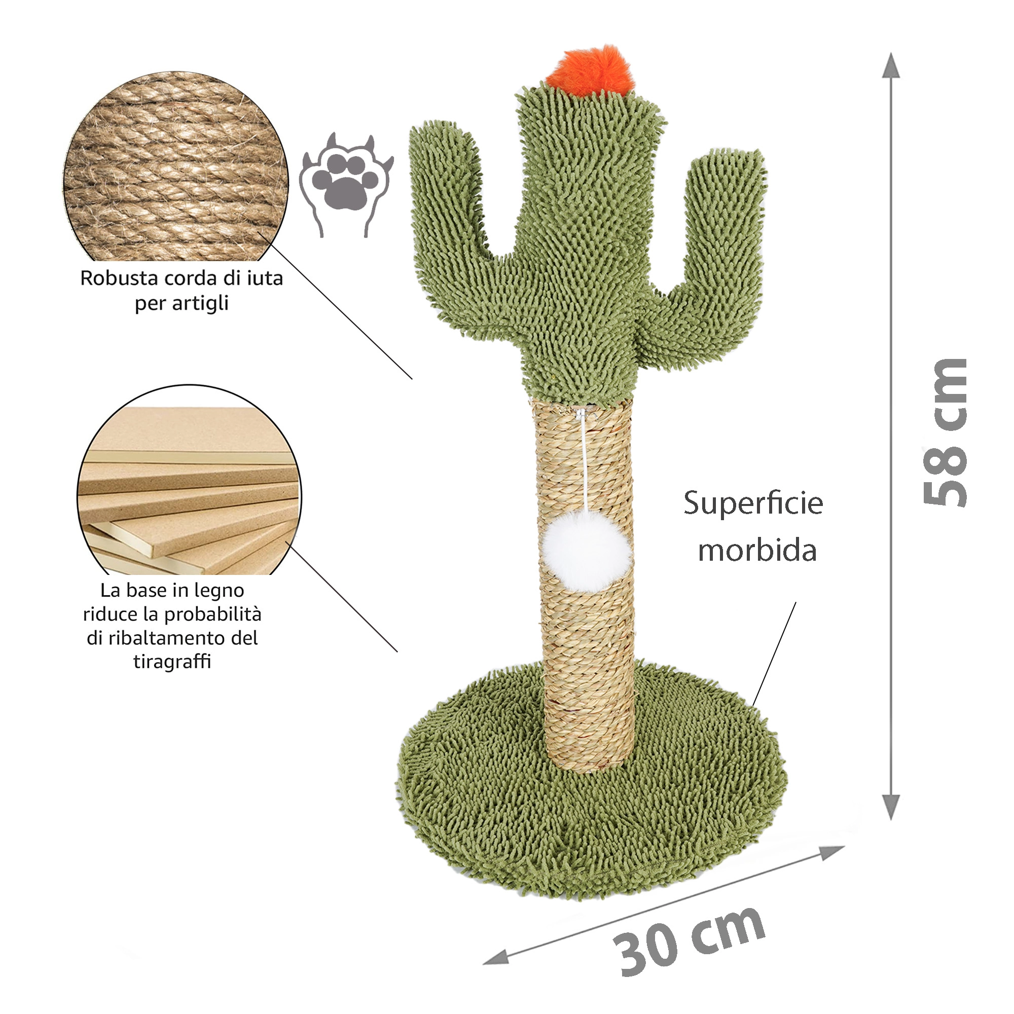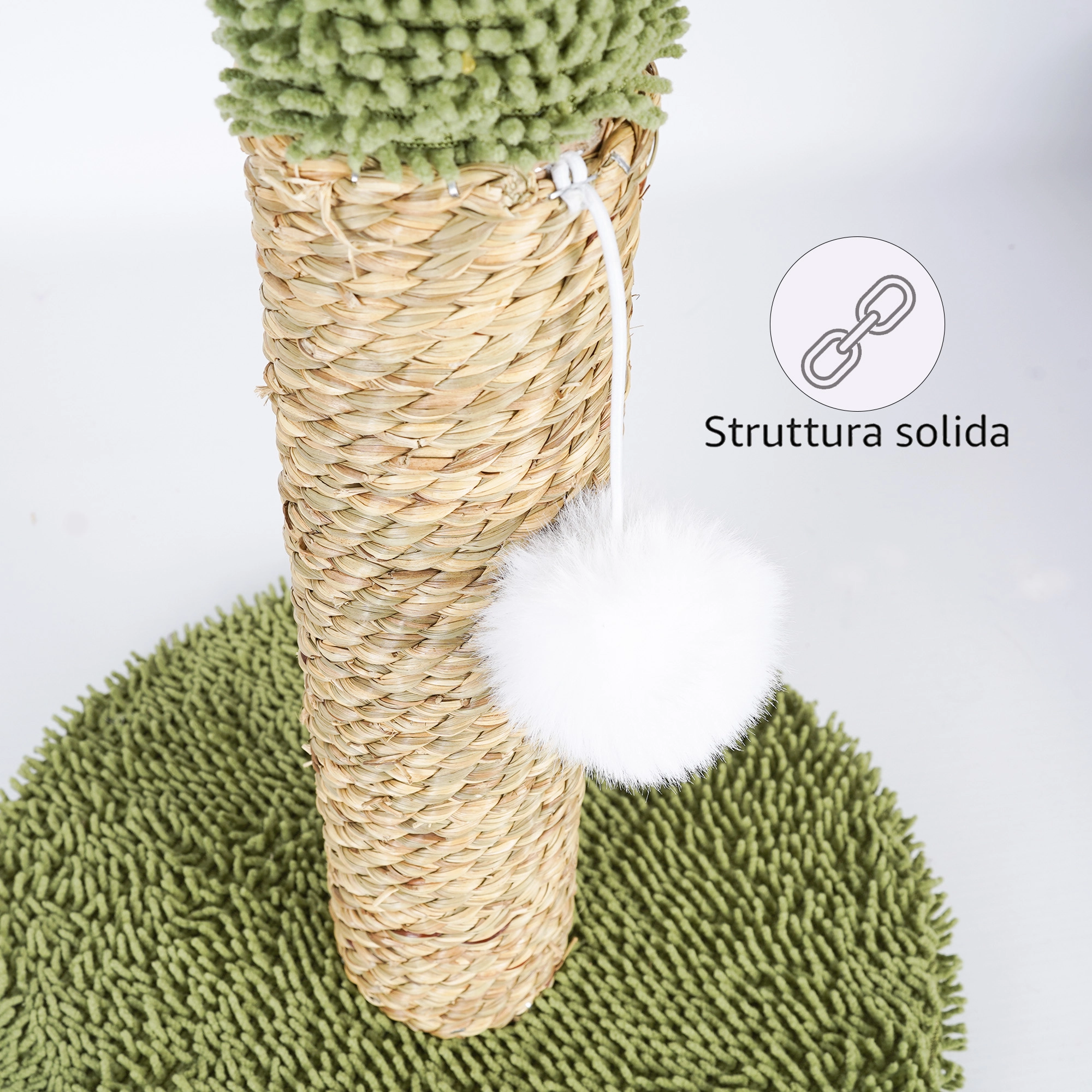 Tiragraffi a base rotonda con palo in juta graffiabile e pallina in peluche.
