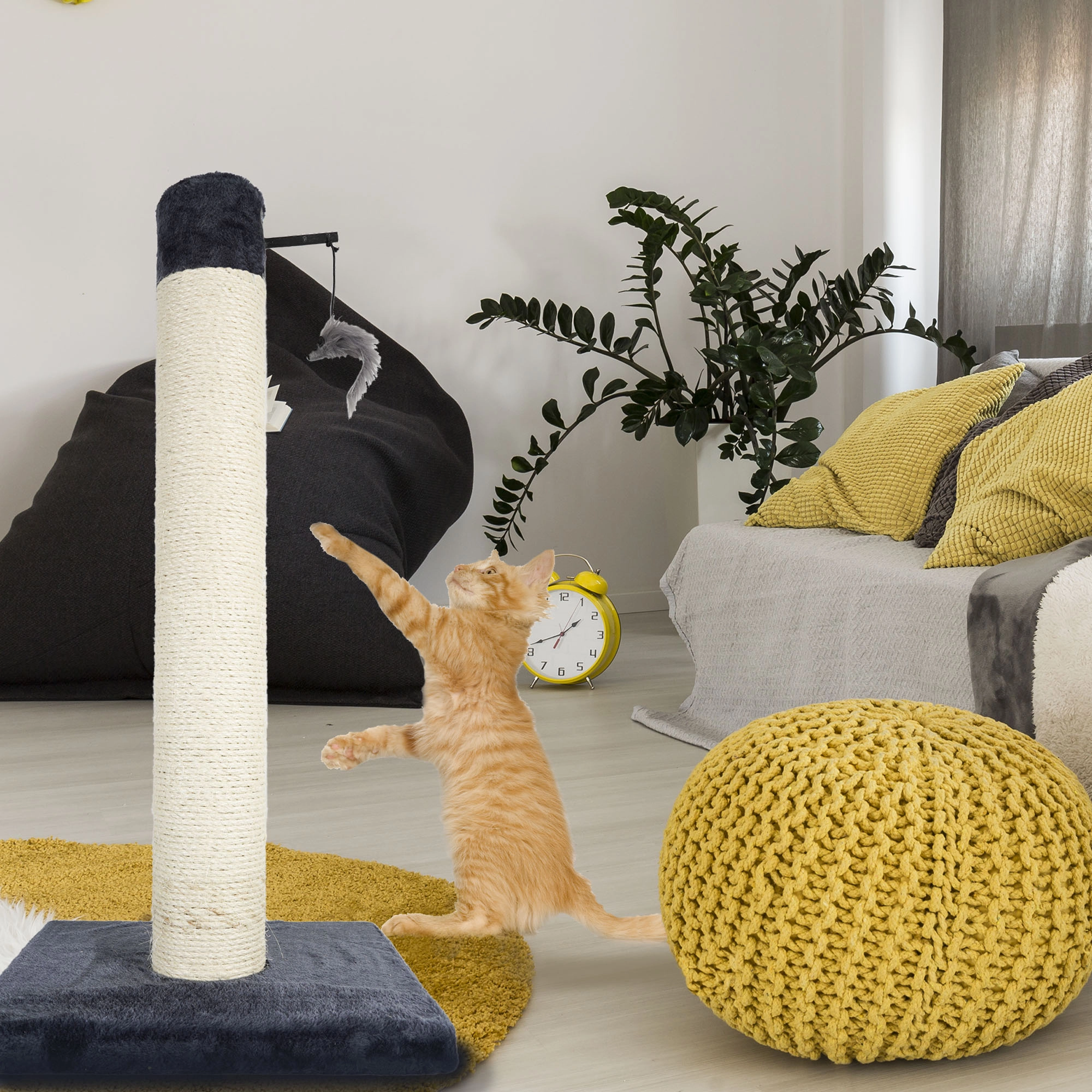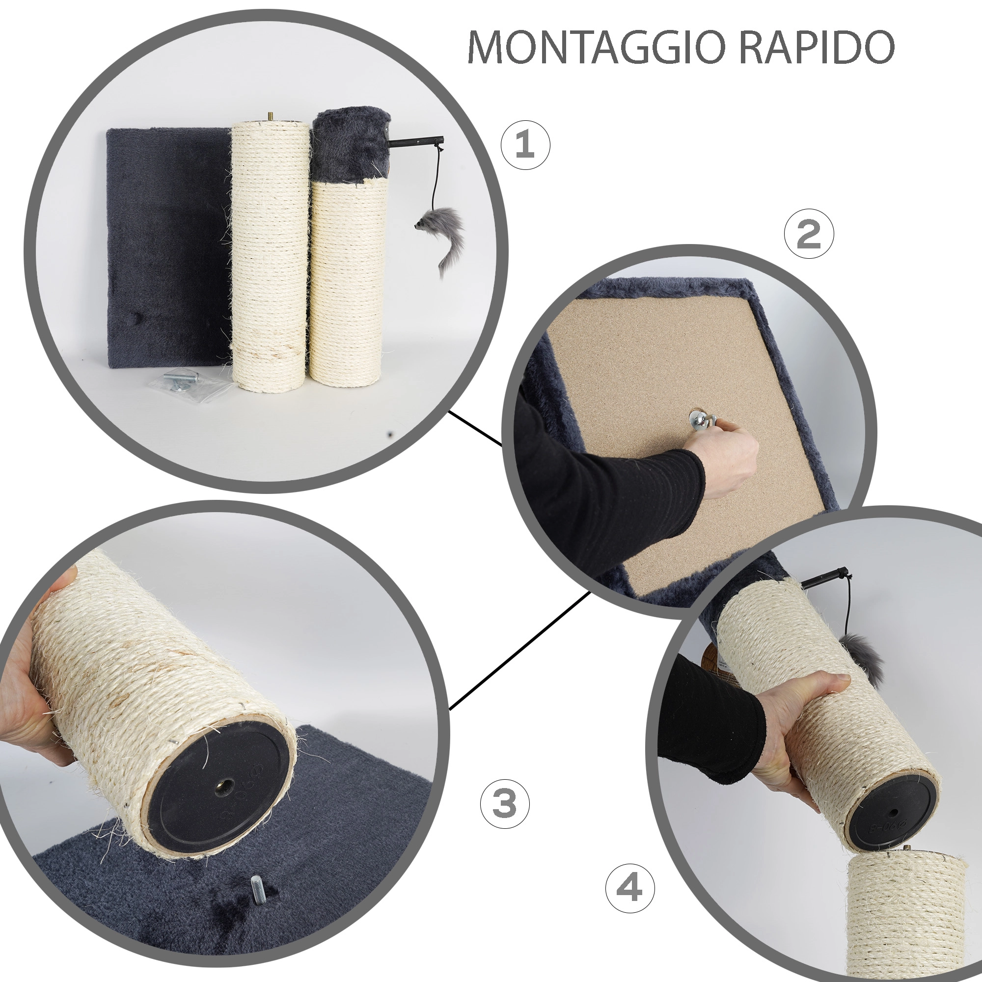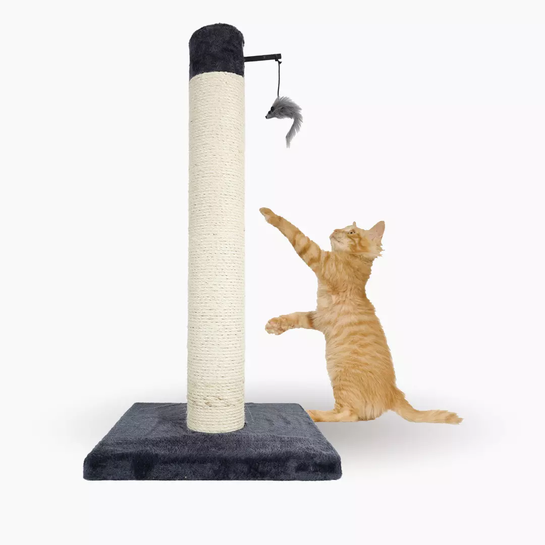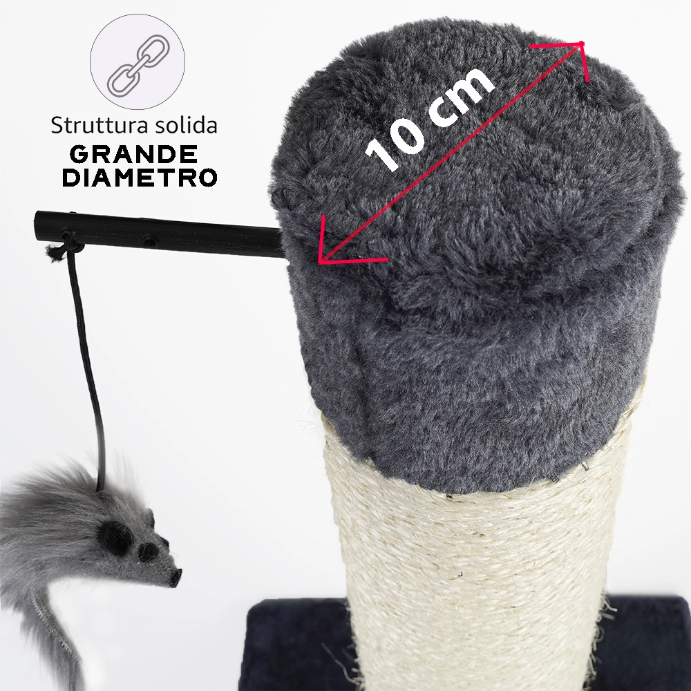 Tiragraffi xxl a base quadrata con palo in juta graffiabile e animaletto sospeso.