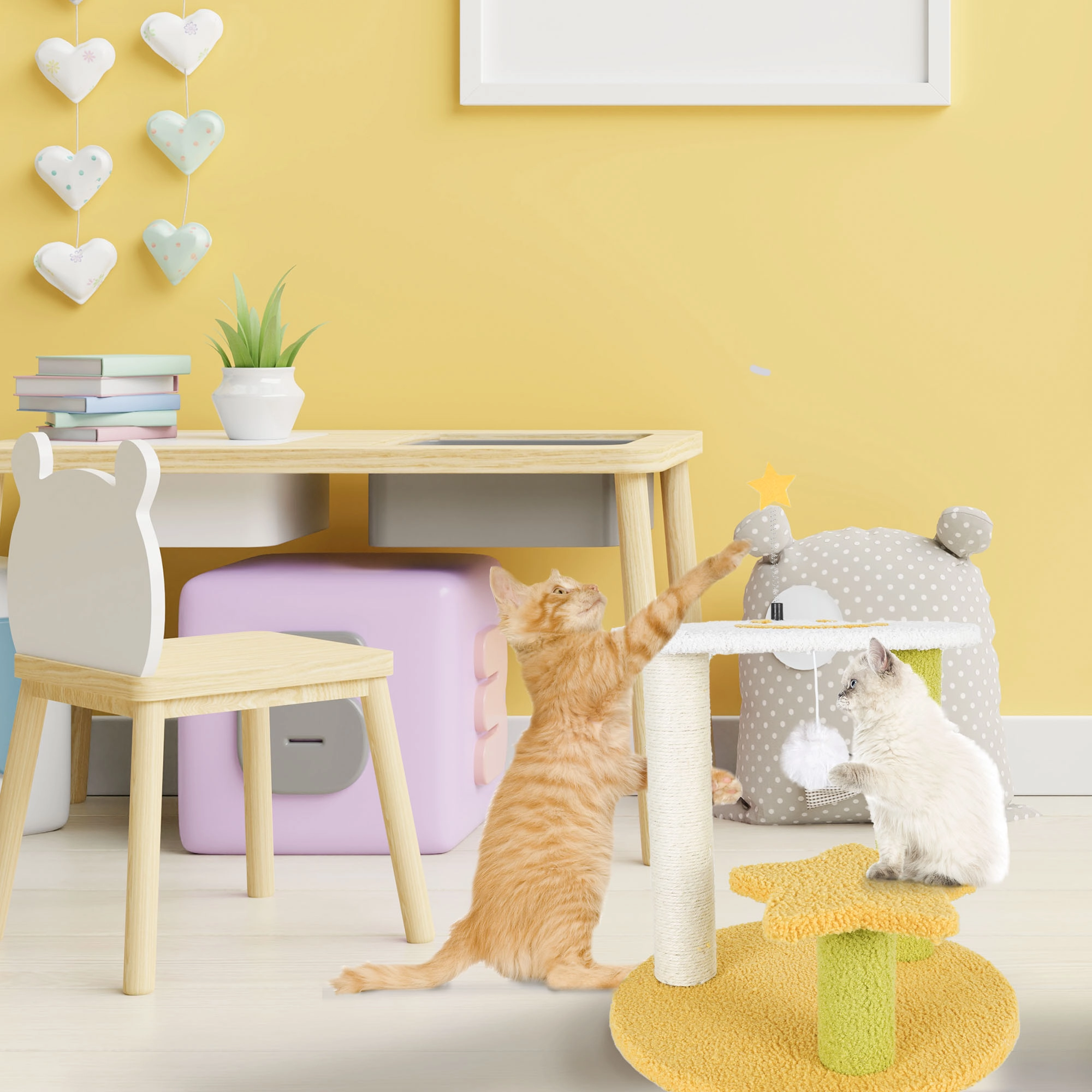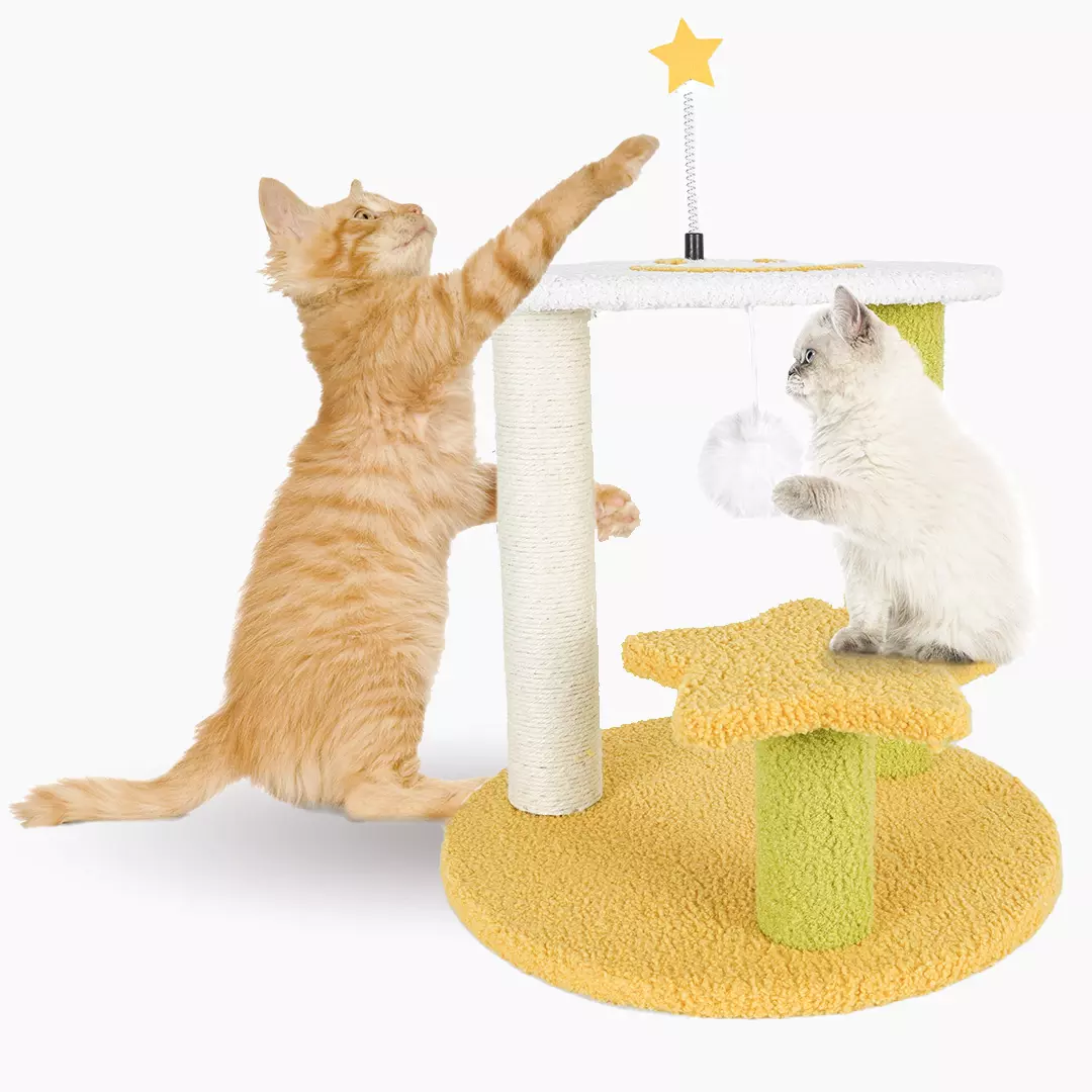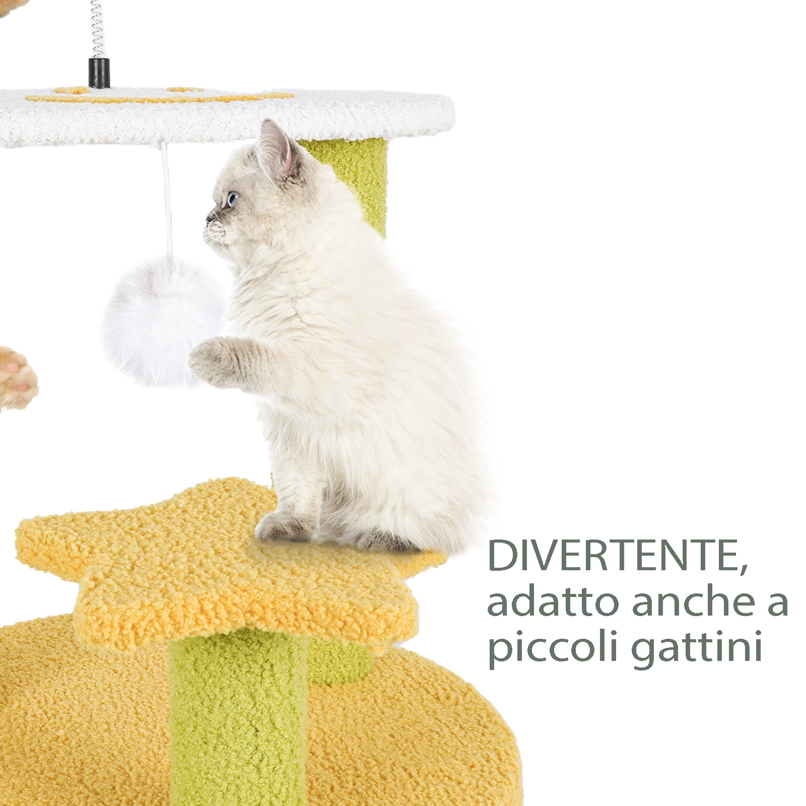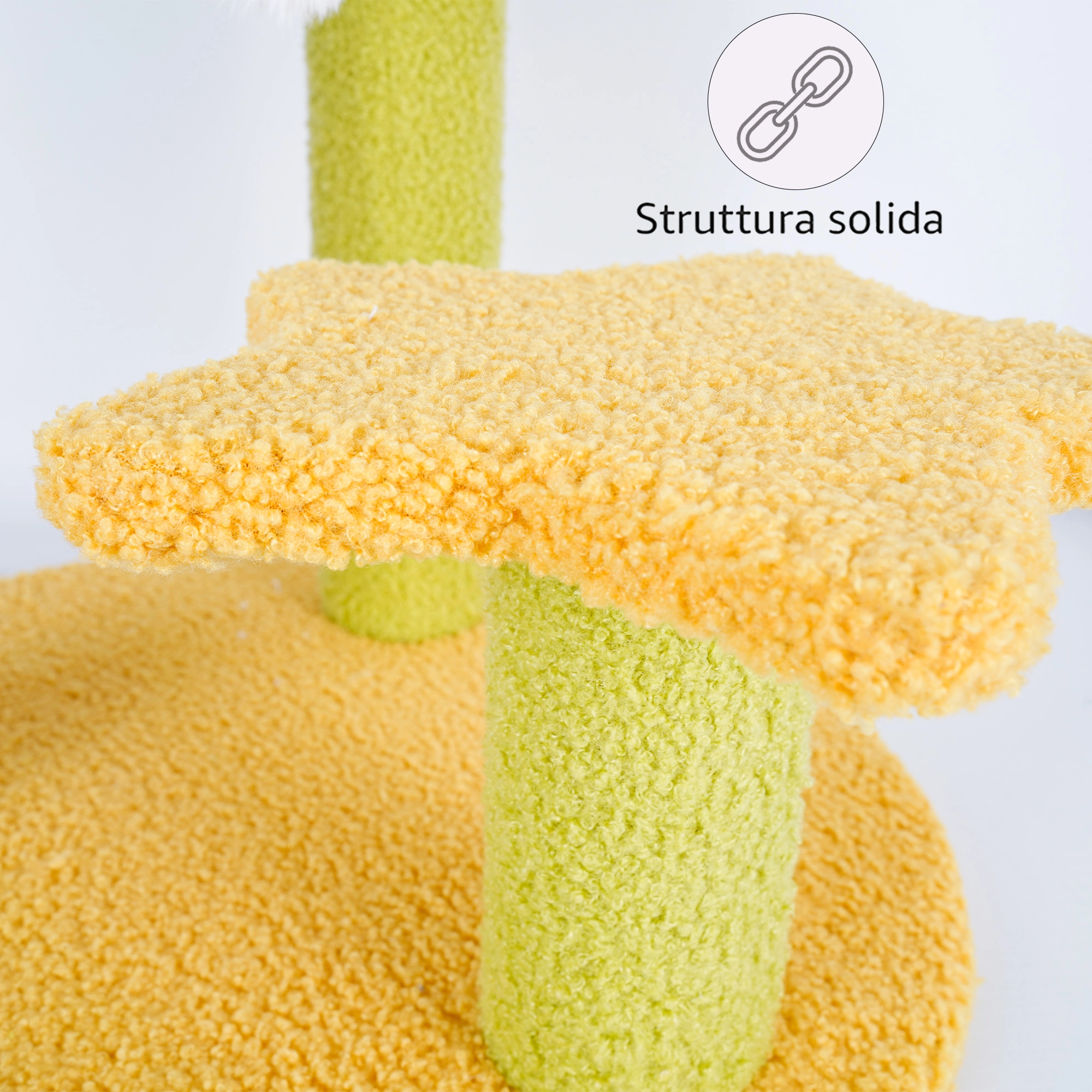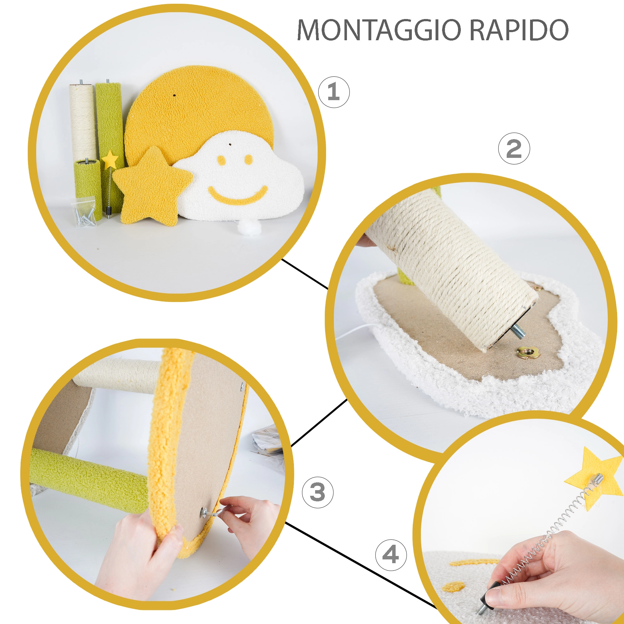 Tiragraffi a base rotonda con palo in juta graffiabile e pallina in peluche.