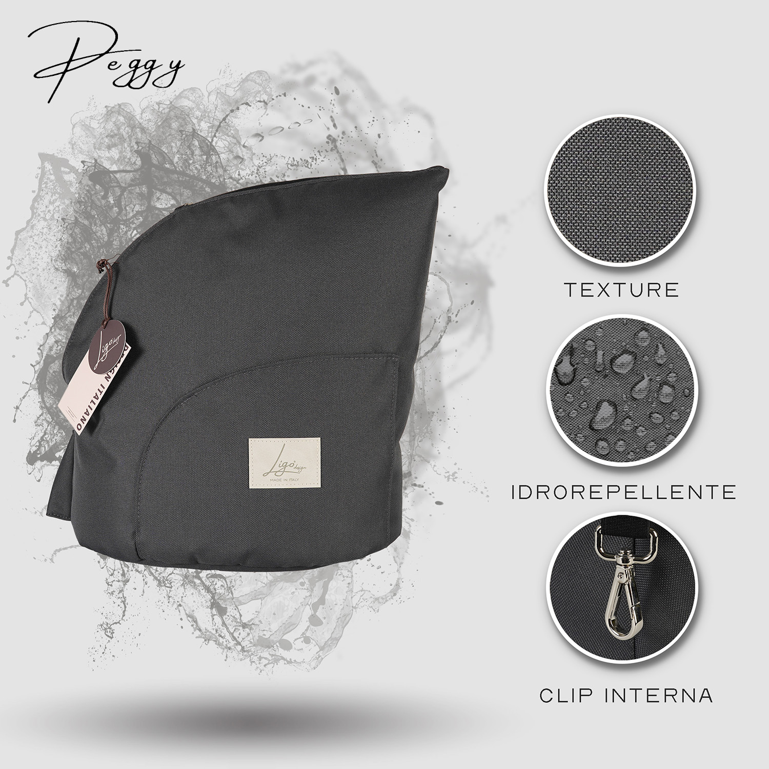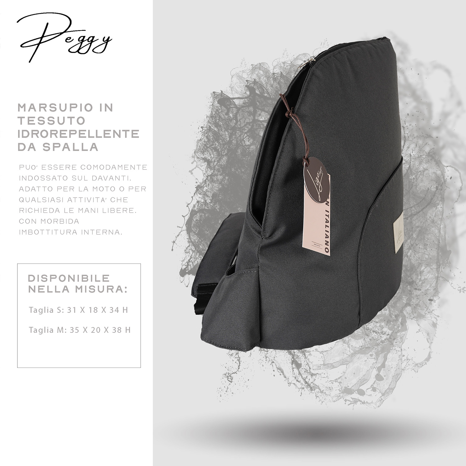 Robusto marsupio in tessuto idrorepellente da spalla, con tracolla regolabile. Può essere comodamente indossato sul davanti.